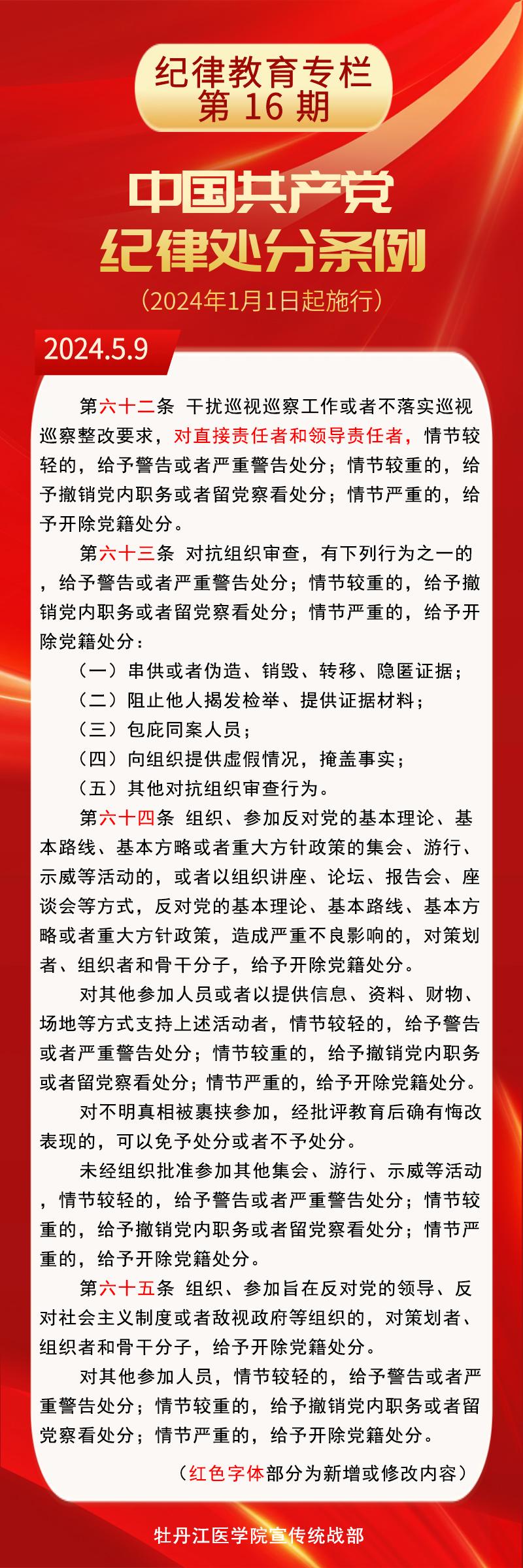 【纪律教育专栏】《中国共产党纪律处分条例》修订条文对照学习(第16期)