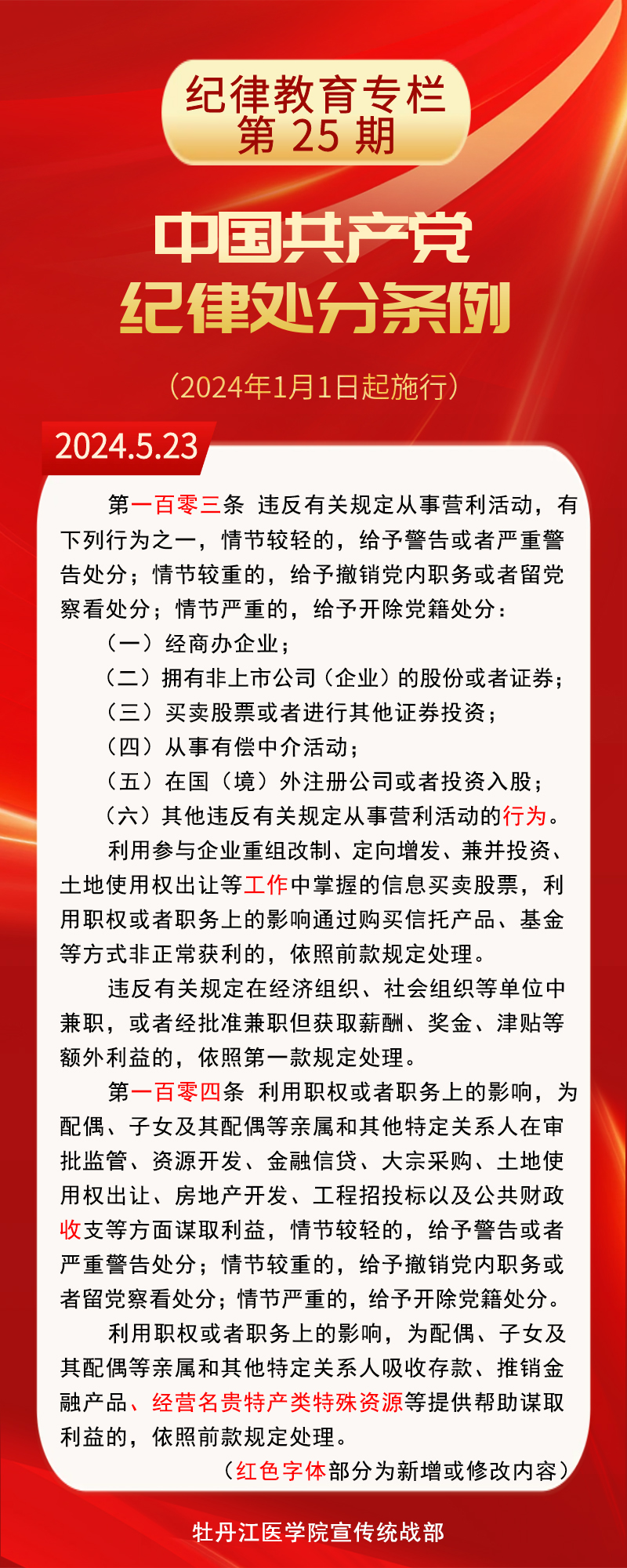 【纪律教育专栏】《中国共产党纪律处分条例》修订条文对照学习(第24期)