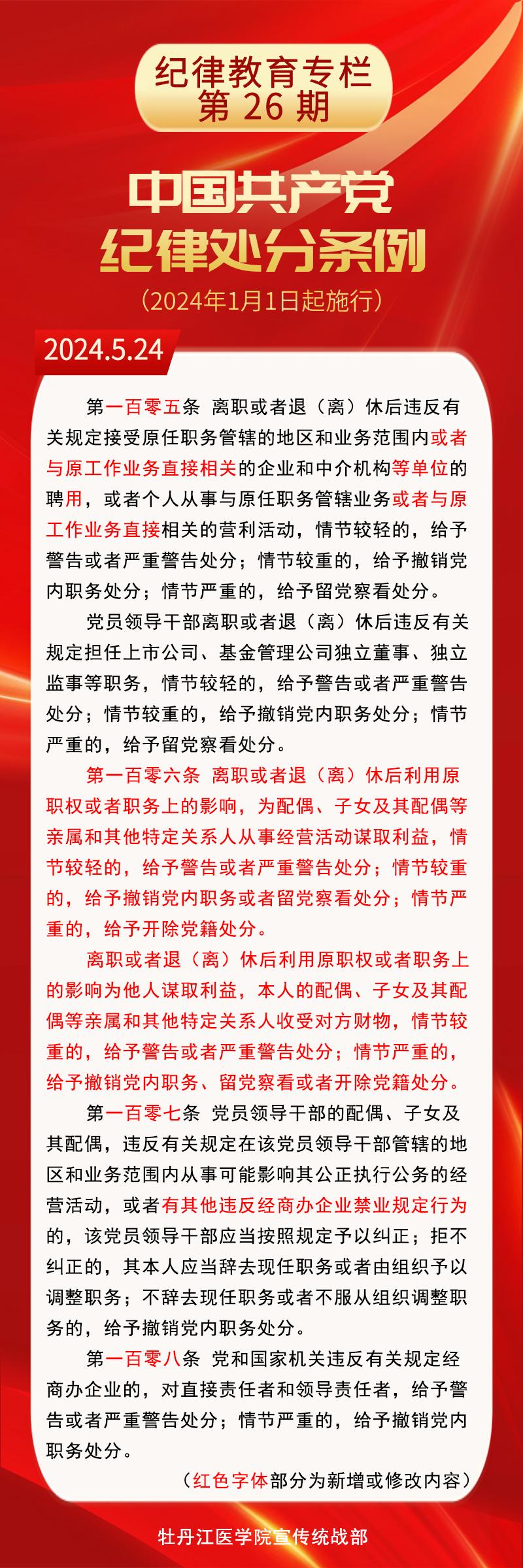 【纪律教育专栏】《中国共产党纪律处分条例》修订条文对照学习(第26期)
