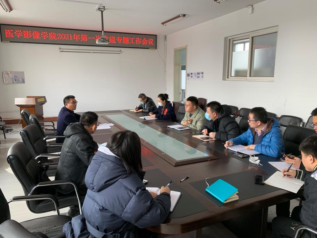 会上,吕世军首先总结2020年医学影像学院党建工作,在肯定各党支部基层党组织成绩的同时,也指出了存在的突出问题和不足,强调各党支部要抓实党建工作,同时总结通报了假期期间学院党委及各党支部开展的工作情况。其次,吕世军传达了学校3月1日会议有关精神及要求,强调各党支部要紧紧围绕学校党建工作要求,突出党建工作精准定位和担当意识,争取在学校年度基层党组织标准化建设考评中取得好成绩。最后吕世军对学院近期党建工作重点进行了工作部署:一是要求各党支部要不断完善和推进党支部标准化、规范化建设的重要内容;二是各党支部档案要及时更新,完善积极分子及党员名册;三是各党支部要做好积极分子培训和党员再教育工作;四是政治理论学习要贯彻支部集体和个人两个层面同步深入学习;五是3月份要召开各党支部组织生活会,各党支部要严格按照组织生活会要求,做好会前准备工作;六是学院筹划召开“学四史、守初心——庆建党100周年”主题教育活动,党员以党史学习教育为主;七是学院筹划组织开展党务人员培训;八是强调学生返校工作、疫情防控工作等注意事项;九是强调党建与思政工作中要高度重视意识形态工作;十是要求各党支部、辅导员要重视新闻的时效性,做好学院的新闻宣传工作。