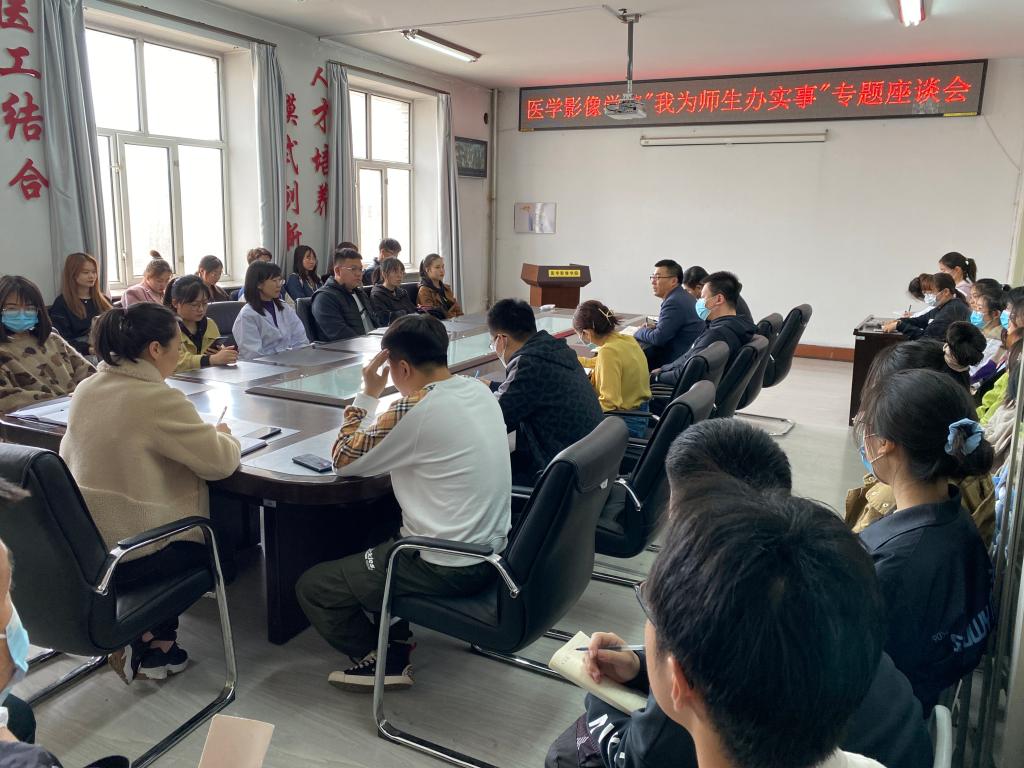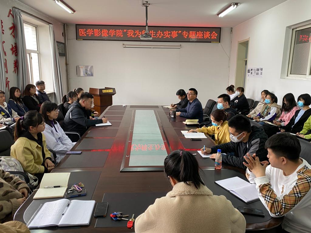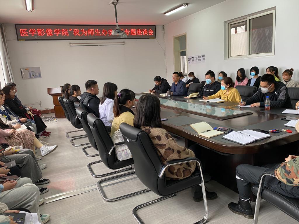 2021年4月16日中午,医学影像学院党委在影像办公楼三楼会议室召开“医学影像学院‘我为师生办实事’专题座谈会”。学院领导班子成员、办公室主任、教务科负责人、科研科负责人、办公室人员,全体辅导员及35名各年级学生代表出席本次座谈会议。此次会议由学院党委书记吕世军主持。