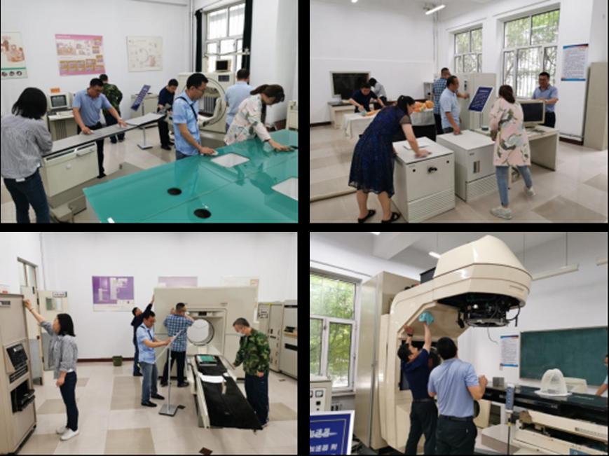 二、教工党员帮忙擦拭影像实习实践基地实验室设备/仪器,打扫卫生,创造宽敞明亮的实验环境,为迎接更名大学专家组的莅临检查尽一份力。