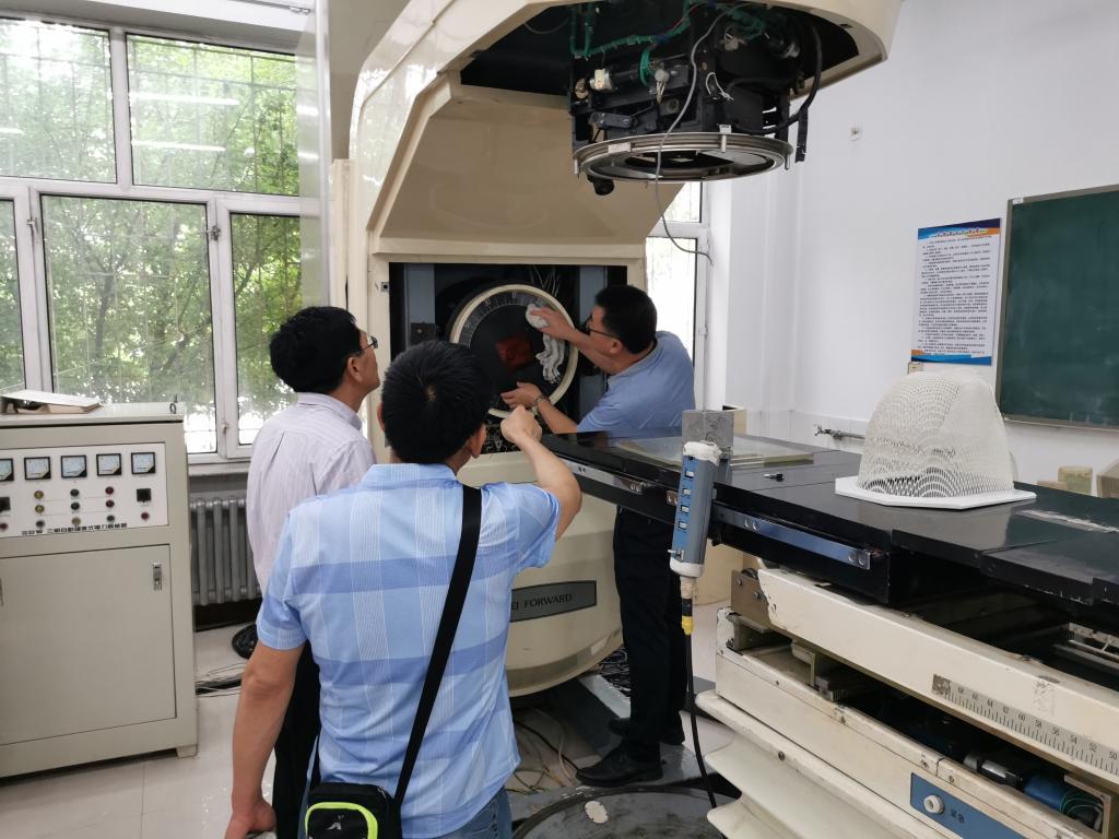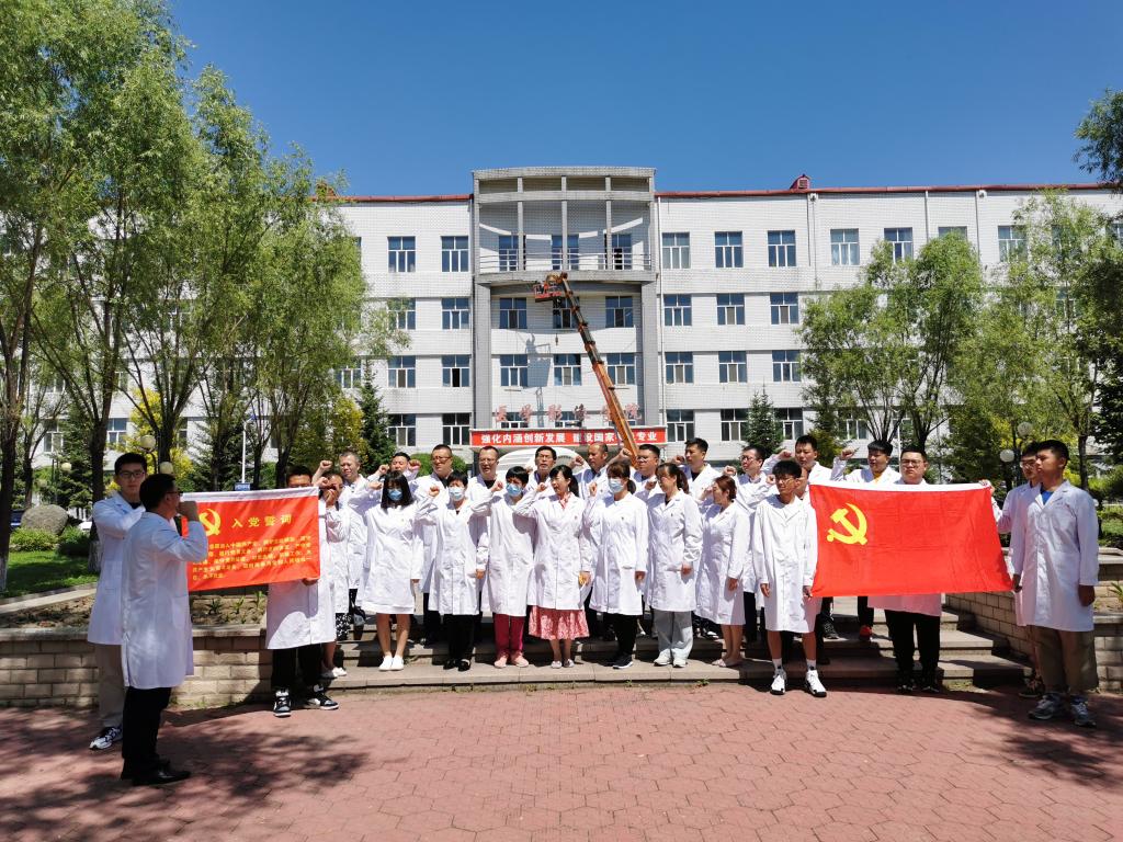 随后,吕世军带领全体教工党员来到学院主院东芝多排螺旋CT前开展“强技能、重实践·重温入党誓词”主题党日活动。全体教工党员面向党旗,高举右拳重温入党誓词,神情庄重、声音铿锵。党员们纷纷表示,通过重温入党誓词,回忆步入教育事业的初心,要自觉增强立德树人、教书育人的荣誉感和责任感;学为人师,行为世范,做学生健康成长的指导者和引路人;牢固树立终身学习理念,加强学习,拓宽视野,更新知识,不断提高业务能力和教育教学质量;努力成为业务精湛、学生喜爱的高素质教师,努力培养一批又一批牢记党和人民的嘱托,恪守全心全意为人民健康服务宗旨的新时代医学生!