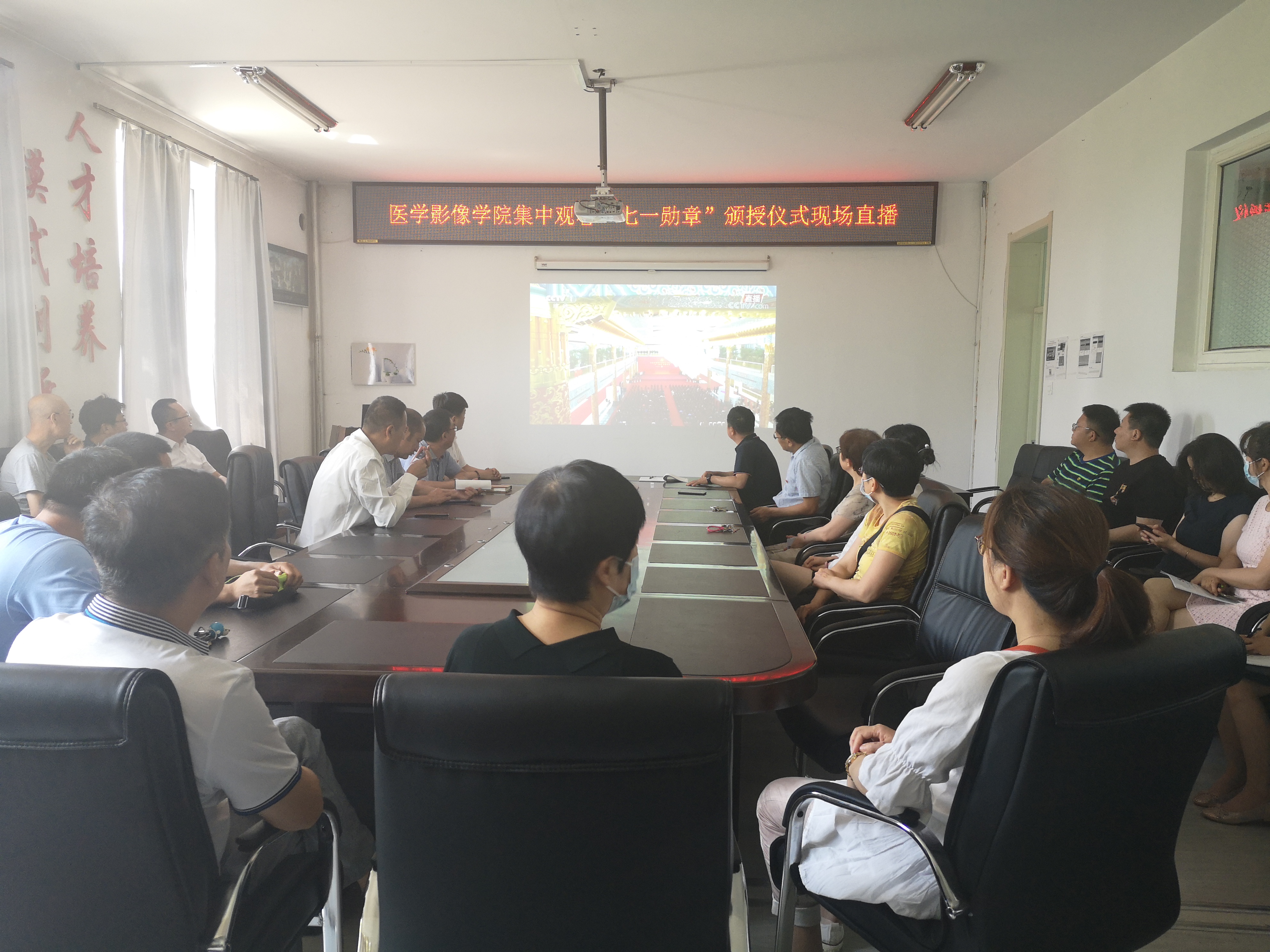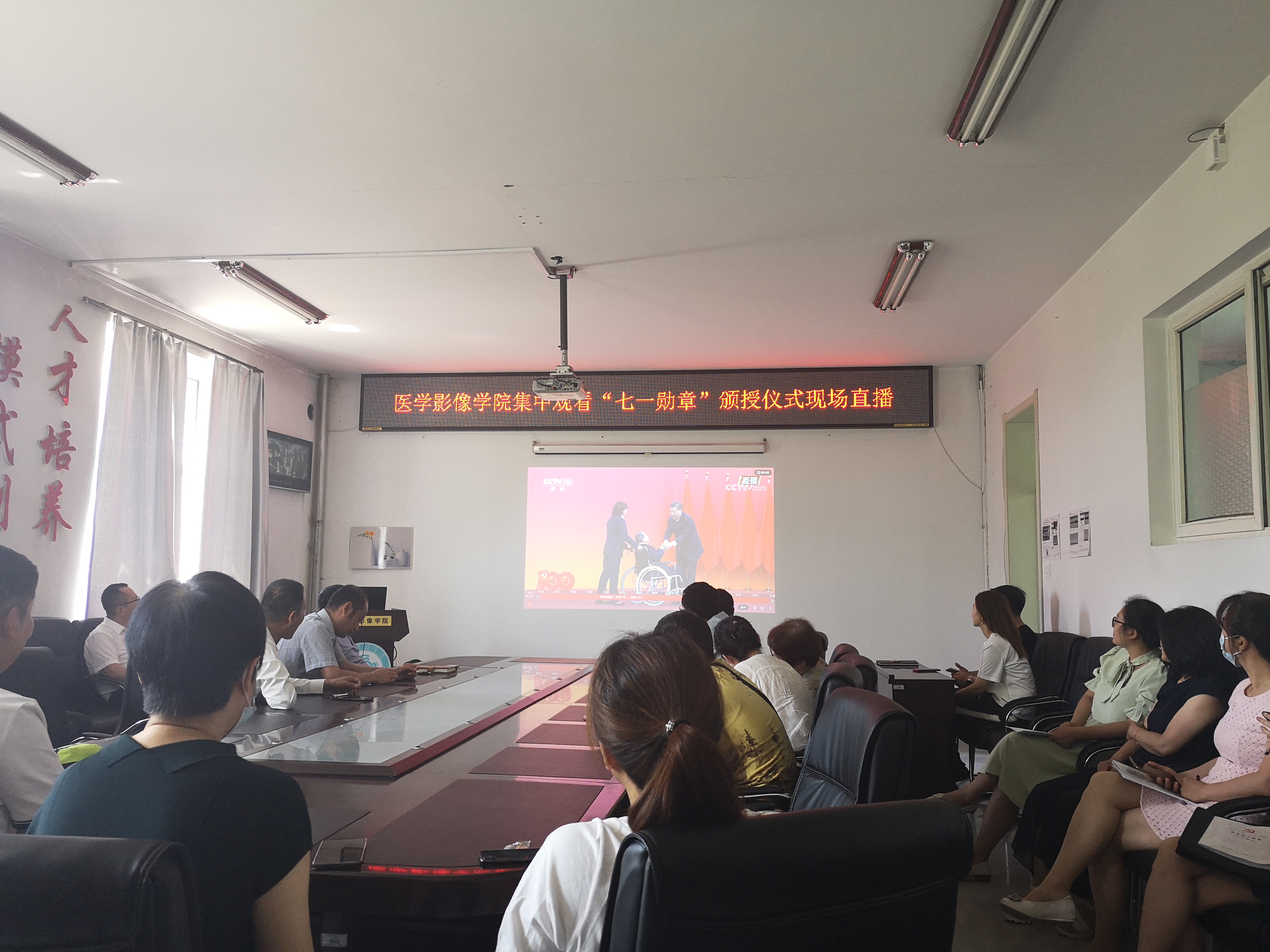2021年6月29日,按照学校党史学习教育领导小组办公室通知要求,医学影像学院党委在影像办公楼三楼会议室组织集体观看“七一勋章”颁授仪式现场直播。学院领导班子成员、副科级以上干部、各教研室、实验室主任、辅导员以及全体无课教师参加此次会议。