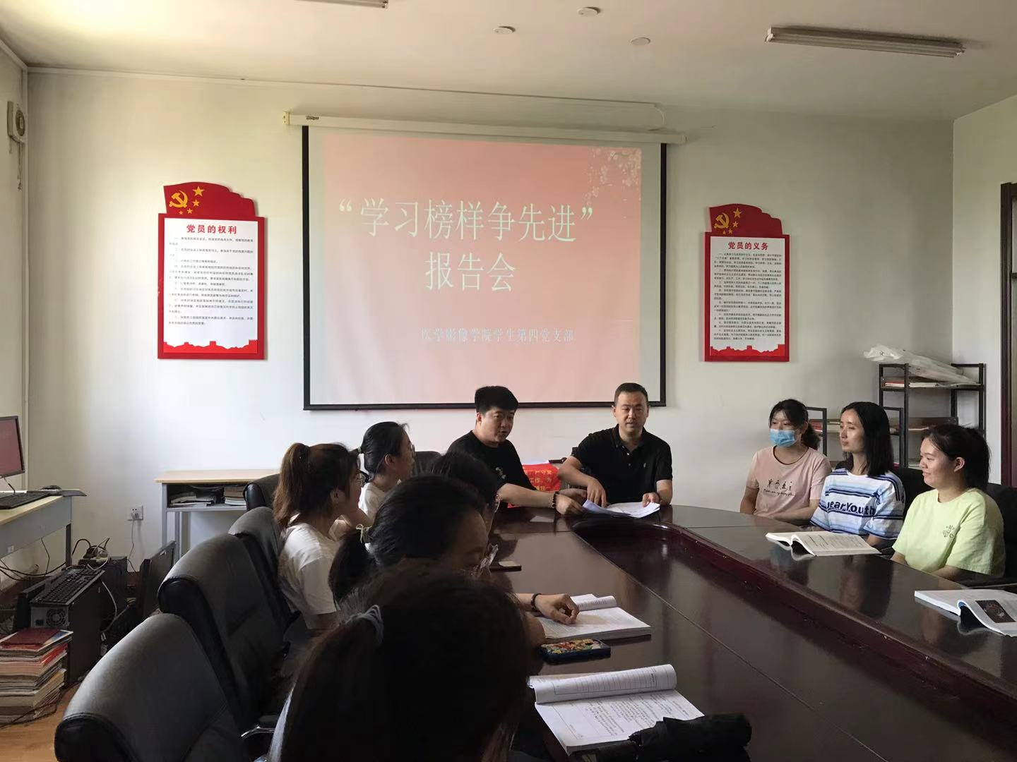 信仰的力量在于笃行。为引导党员同志认真学习榜样、努力争当先进、树牢为民宗旨、勇于担当作为,医学影像学院学生第四党支部于2021年7月7日中午,在医学影像学院三楼党员之家组织开展“学习榜样争先进”典型力量做引领报告会,会议由医学影像学院学生第四党支部书记赵春阳同志主持,邀请优秀基层党组织、优秀共产党员暨牡丹江医学院医学影像学院学生第二党支部、党支部书记宋海南同志为我支部在牡丹江实习生党员做报告。