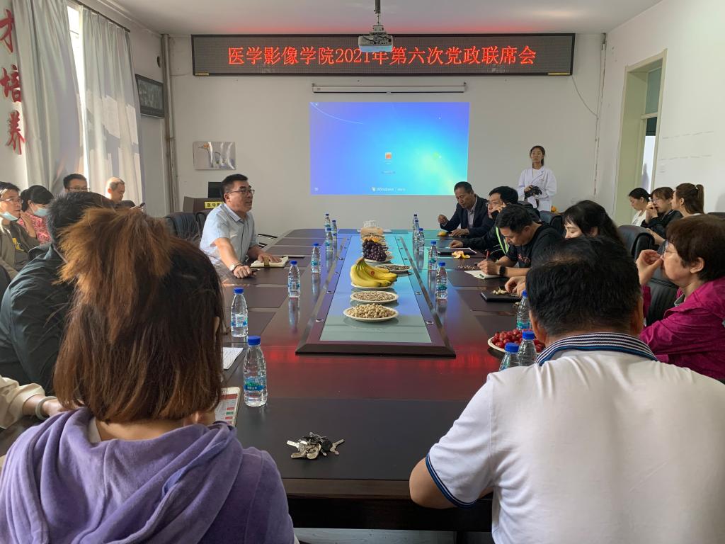 2021年9月9日上午,医学影像学院在影像三楼会议室召开2021年第六次党政联席会,学院领导班子成员、各教研室、实验室主任、各行政部门负责人、辅导员、全体教工参加了会议。会议由学院党委书记吕世军主持。
