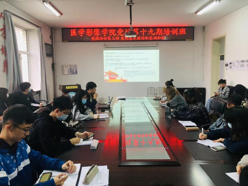 2021年10月14日中午,医学影像学院第19期党校培训班第三讲集中授课在影像办公楼三楼会议室开课,本次党课主讲人为学生第四党支部书记赵春阳,主题为党的基本理论和基础知识。第十九期入党积极分子37人参与了本次培训。
