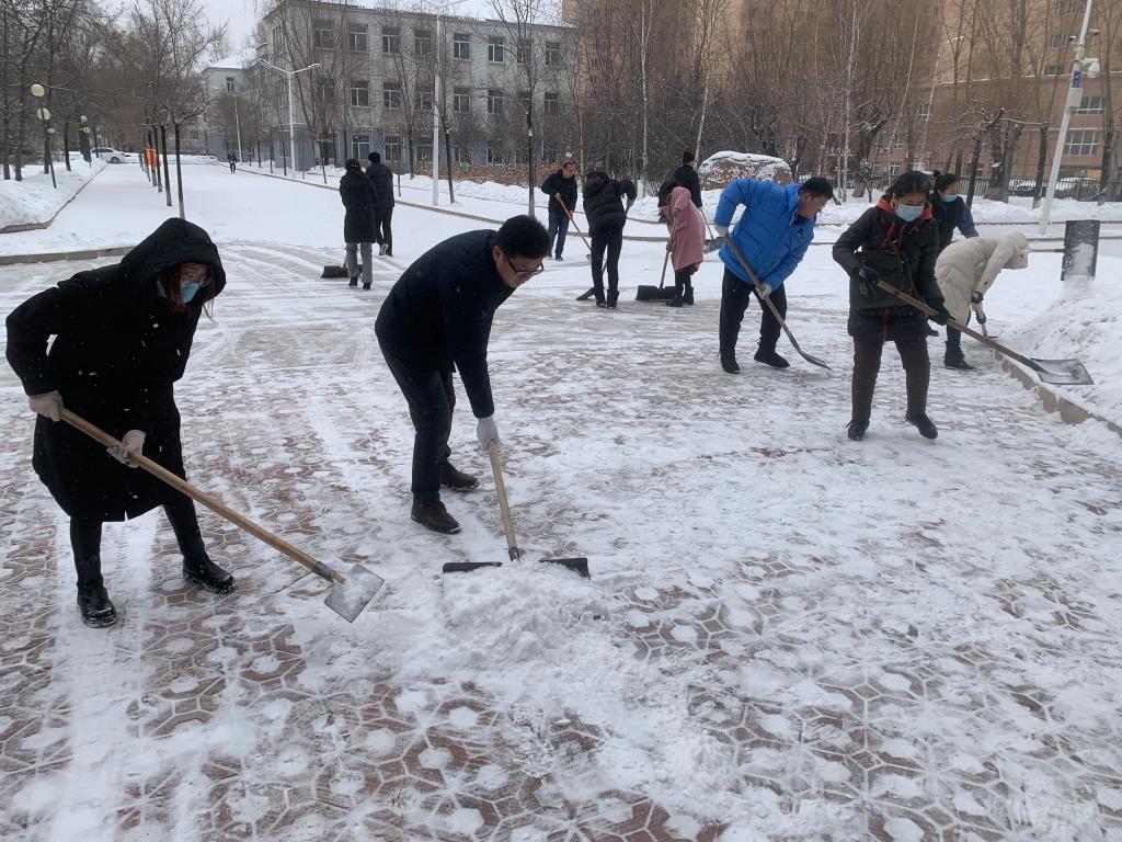 12月16日,牡丹江又迎来了新的一场降雪,美丽的雪景将校园装饰的银装素裹,但同时也给校园交通和师生出行带来了不便,为保障师生出行安全、维护学校正常教学秩序,12月16日上午,医学影像学院领导班子成员及全体无课教师在影像办公楼前分担区开展清冰雪活动。