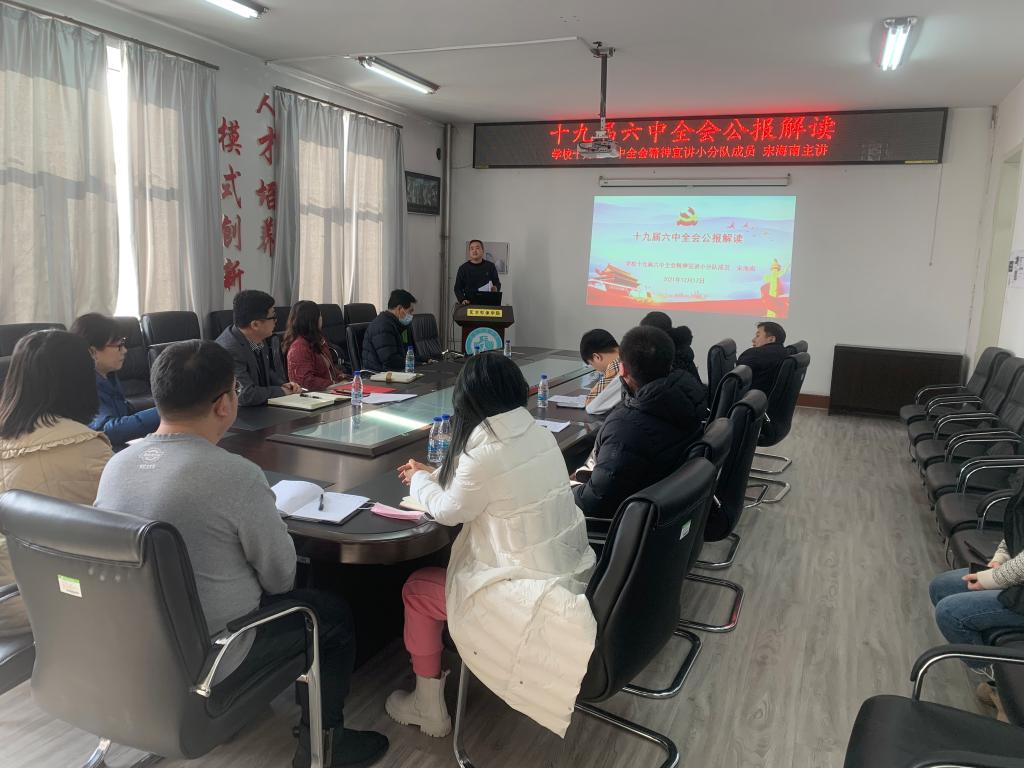 为认真学习宣传贯彻党的十九届六中全会精神,落实学校党史学习教育工作领导小组下发的[2021]55号工作提示《关于成立牡丹江医学院学习宣传贯彻党的十九届六中全会精神宣讲小分队的通知》,12月17日,医学影像学院党委邀请学校第十九届六中全会精神宣讲小分队成员,医学影像学院学生第二党支部书记宋海南开展了“党的十九届六中全会公报解读”宣讲活动,学院领导班子、教工学生党支部书记、全体辅导员参加本次活动。