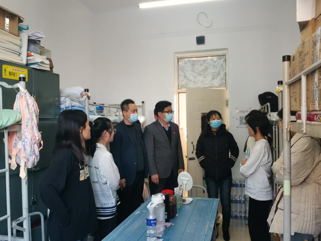3月11日下午,学院党委书记潘艳明、院长邢健、全体辅导员走访学生寝室,了解学生线上学习状态,宣传教育遵守疫情防控安全工作,排查宿舍安全隐患。