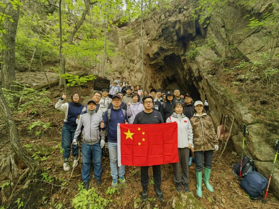 上午九点整,师生们整装待发,嘹亮自信的呐喊声刺破天际,开始了为时3个小时的抗联之路。一路下来,有密林、有荆棘、有河流、有田地、有山谷。实践证明这支小小的“抗联队伍”是经得起考验的,只有一名女同学落水,但她迅速调整状态又投入到战斗中。大家翻山越岭,辗转跋涉,经过一小时五十分的崎岖山路及乱石丛生的河道穿越,成功抵达了本次活动的目的地——“将军洞”。1938年冬,周保中率东北抗日联军第二路军军部和吉东省委秘书处近百人,在夹皮沟山洞隐蔽21天,躲过日伪“讨伐队”的追击,最危险的时候,连拉网捜山敌人的说话和咳嗽声都能听得到,有效的保存了地方党组织和抗联部队,因此得名将军洞。到达洞口的时候师生同声呐喊“请党放心、强国有我”。青年教师徐林轩在接受学院新媒体采访时说:“要珍惜来之不易的和平,继承抗联英雄的革命精神,坚持中国共产党的领导,为教育事业贡献自己的力量,早日成为一名正式的优秀共产党员。”青年学生也纷纷表示要在八女投江和周保中将军等革命烈士精神的启发下,越是艰险越向前,勇敢追求自己的理想和信仰,并为之坚持不懈、不断奋斗。