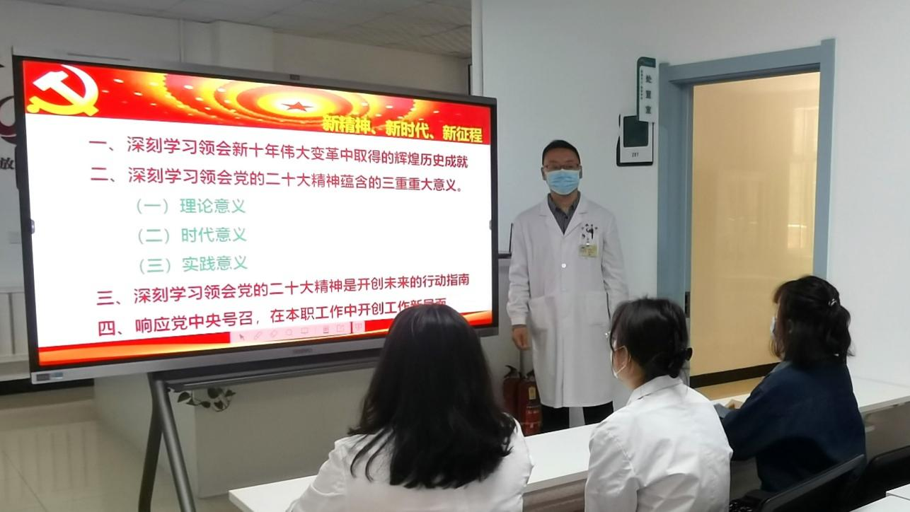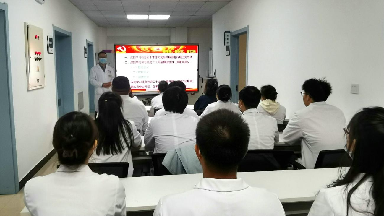 为进一步深入学习宣传贯彻党的二十大精神,进一步学深、学透党的二十大蕴涵的深刻政治理论基础,加强临床教研室、科研与研究生培养科全体党员的思想政治意识,增强医疗服务与教育教学理念,发挥临床实践与教育优势,充分体现学院鲜明办学特色,2023年5月26日,医学影像学院临床教研室联合科研与研究生培养科党员干部及部分群众代表在附属红旗医院影像中心所属党支部组织开展学习贯彻党的二十大精神主题党课活动。本次活动由医学影像学院副院长李芳巍同志主讲。