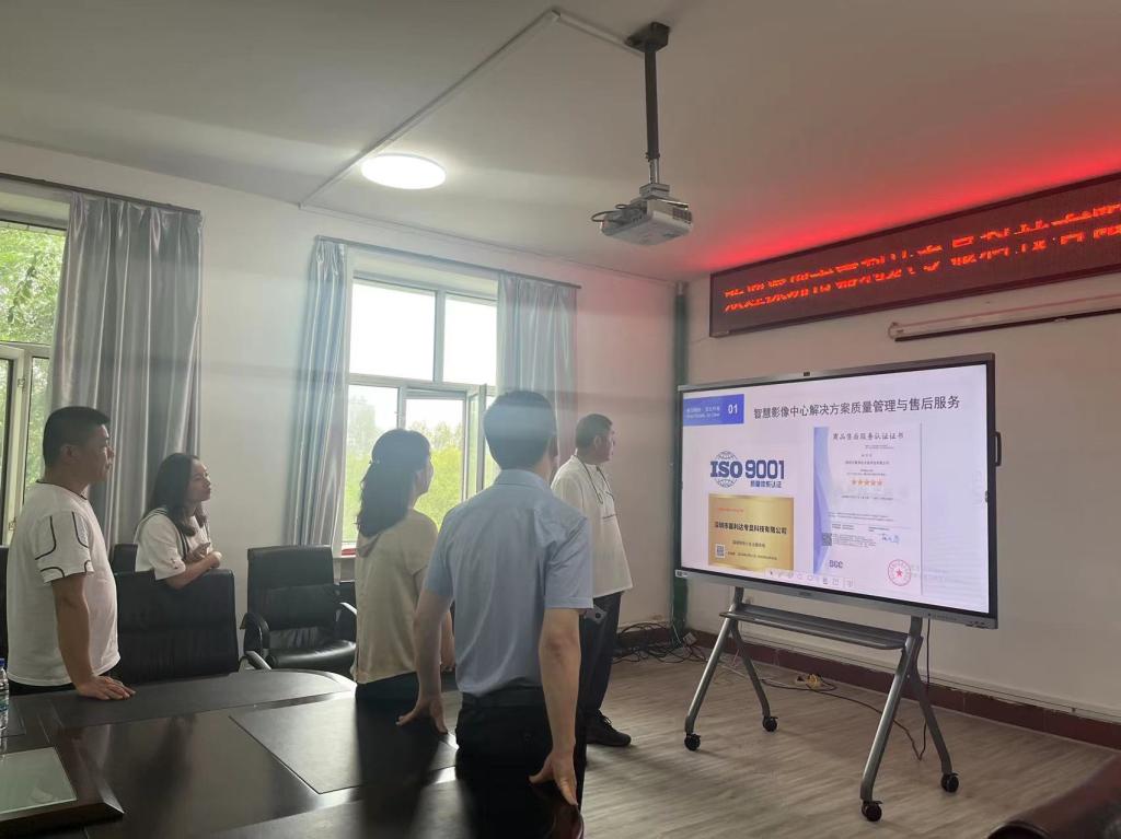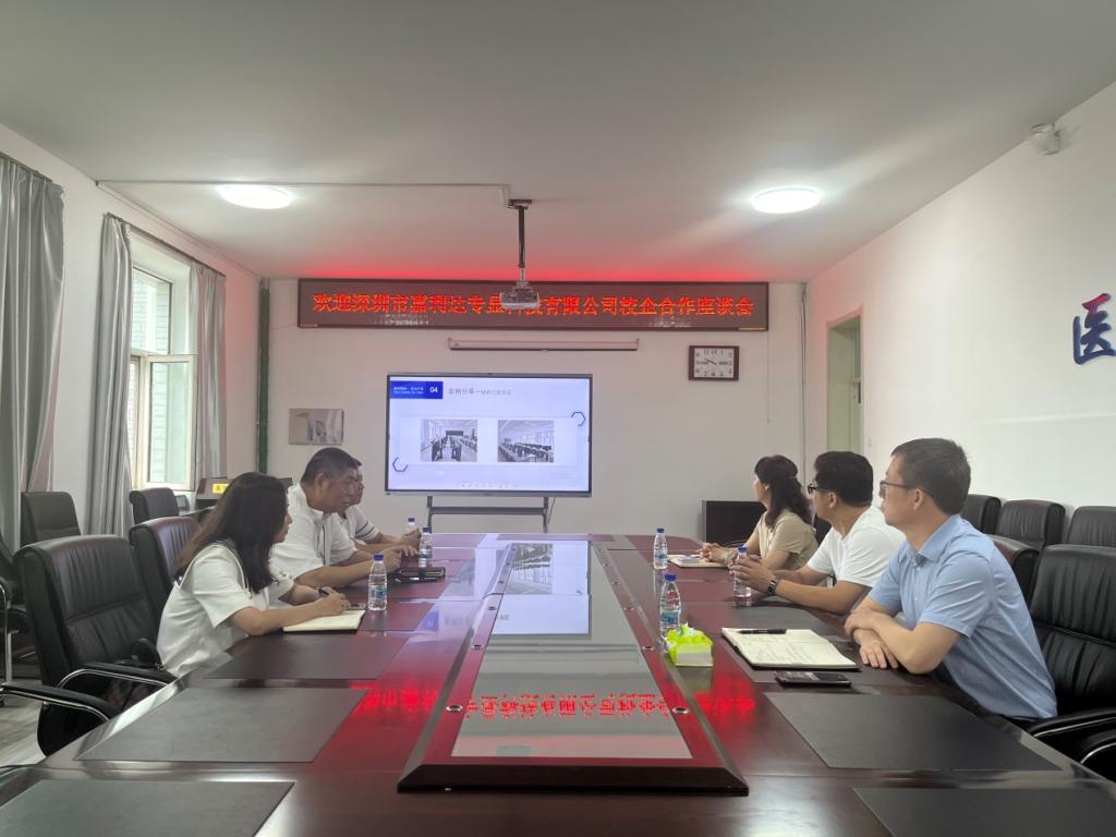 2023年8月16日上午,深圳市嘉利达专显科技有限公司(睿显)总经理陈平、副总经理代洁、销售经理翟英辉来我院调研交流。医学影像学院院长邢健主持座谈,医学影像学院党委书记潘艳明、副院长于广浩、办公室主任韩雪山出席。