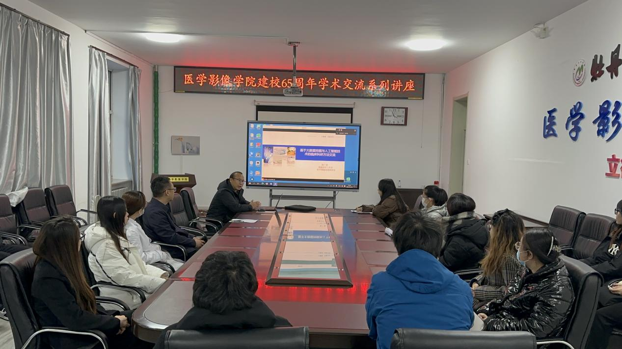 为庆祝学校65周年华诞,深入推进学院科研创新和学术精神,2023年11月,医学影像学院科研与研究生培养科开展了建校65周年学术交流系列讲座,分别邀请附属红旗医院影像诊断教研室朱敏教授和医学图像处理教研室陈广新老师作学术讲座,讲座由副院长李芳巍主持,学院领导班子成员、无课教师及研究生参加。