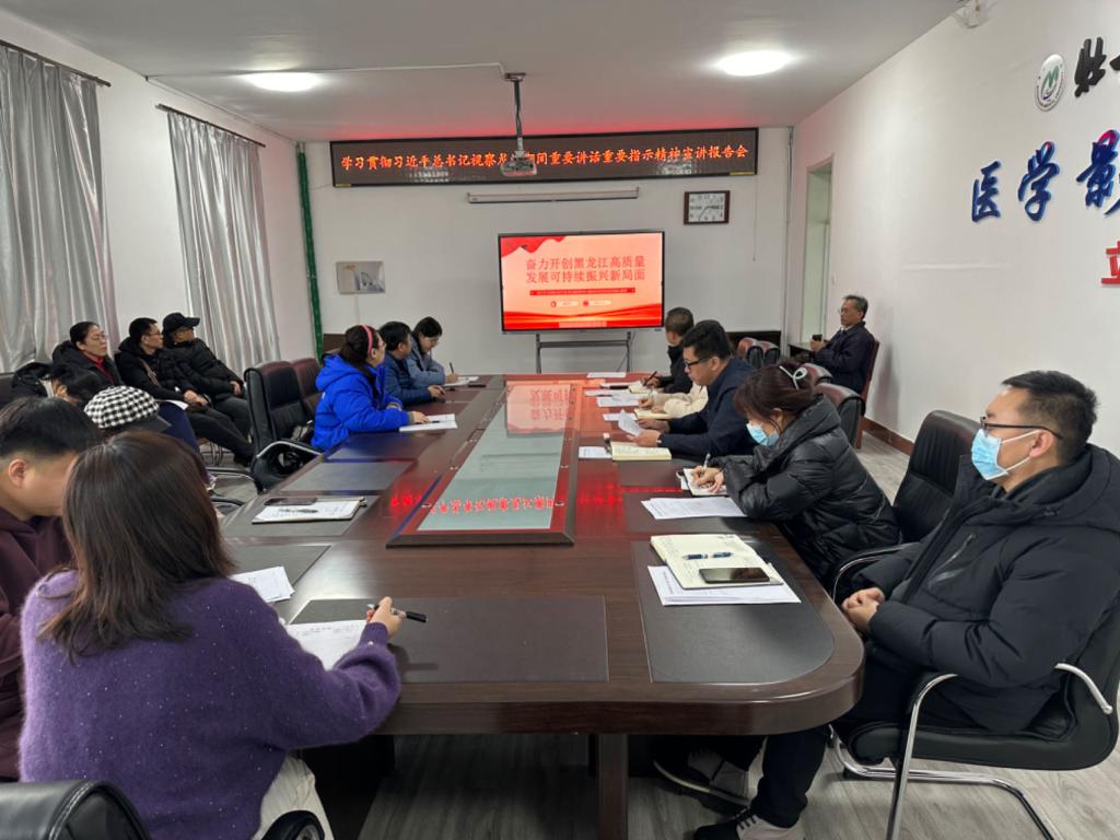 1月5日下午,医学影像学院党委学习贯彻习近平总书记视察龙江期间重要讲话重要指示精神宣讲报告会在影像办公楼3楼会议室召开。学校教师宣讲团成员、学院党委书记潘艳明作宣讲报告,学院领导班子成员、全院教职工现场听取报告。