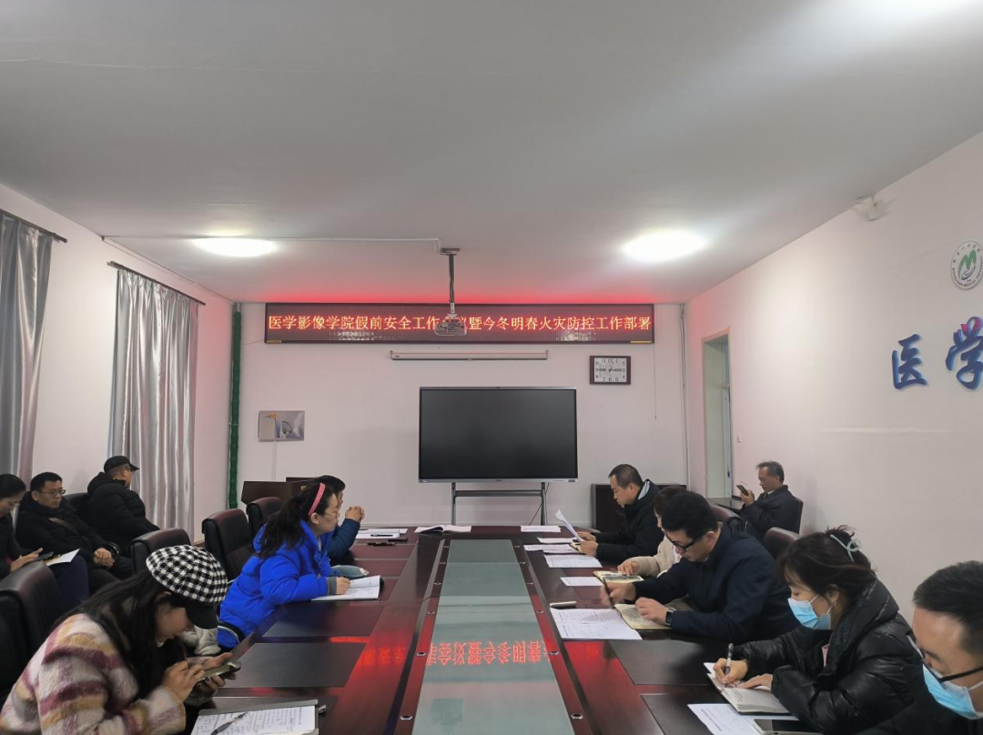 为做好寒假期间校园安全工作,进一步加强今冬明春火灾防控,1月5日下午,医学影像学院在三楼会议室召开假前安全工作会议暨今冬明春火灾防控工作部署,学院全体教职工参加会议,会议由医学影像学院副处级辅导员宋海南主持。