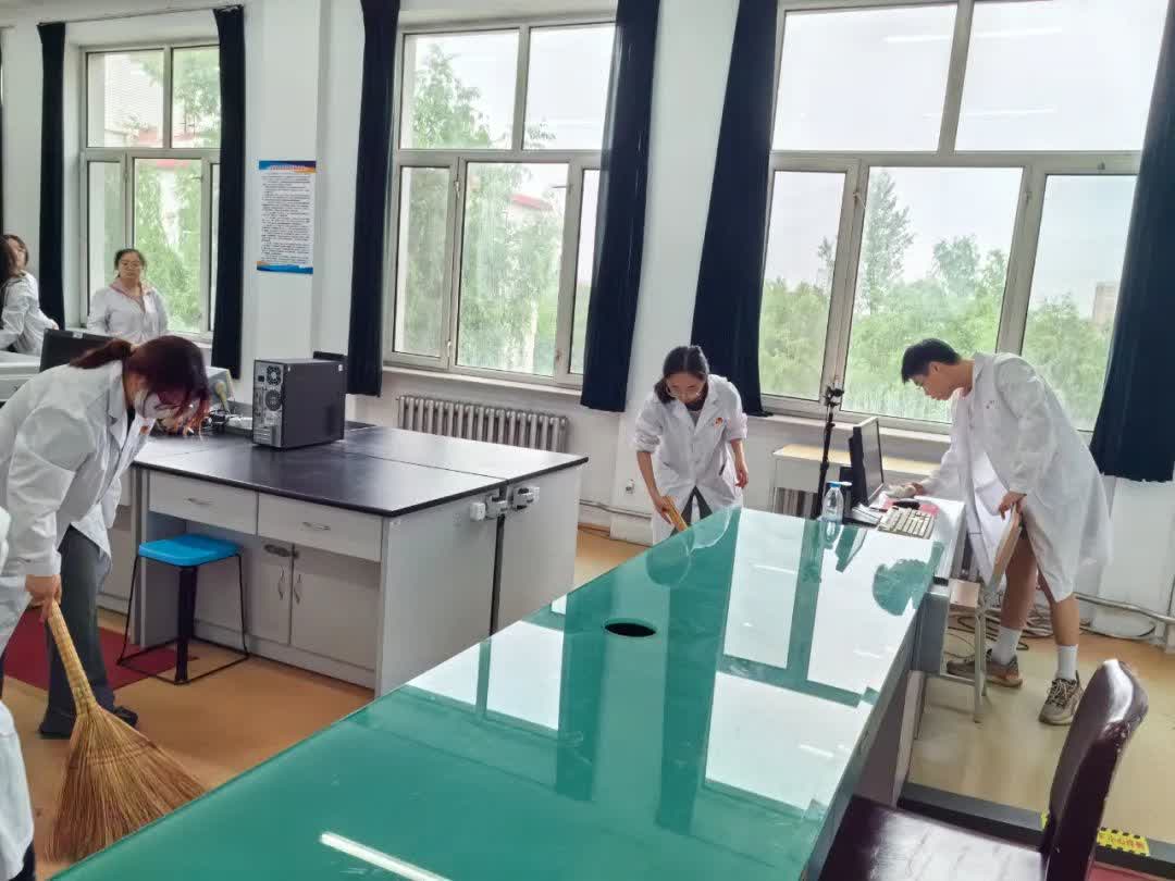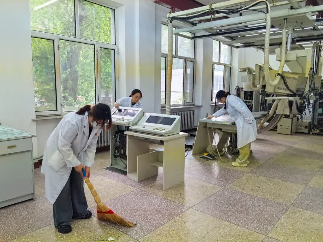 学校更名大学之际,6月21-24日又将迎来我校首届“影像人”论坛,此项活动由学校主办、医学影像学院承办,届时牡丹江医学院历届校友将回校共襄盛会、共谋发展,重温青春岁月,畅叙师生情谊,交流工作经验,提出学习建议,分享喜悦与成长,共话美好未来!为了更好的展示校园风采,让历届校友留下美好回忆,助力本次论坛圆满举行,医学影像学院学生第五党支部组织所辖2022级影像第三团总支发展对象、入党积极分子、学生共计57人联合教工党支部于6月20日在影像实习实践基地开展“强院有我 青春担当”实验室清洁志愿服务活动。