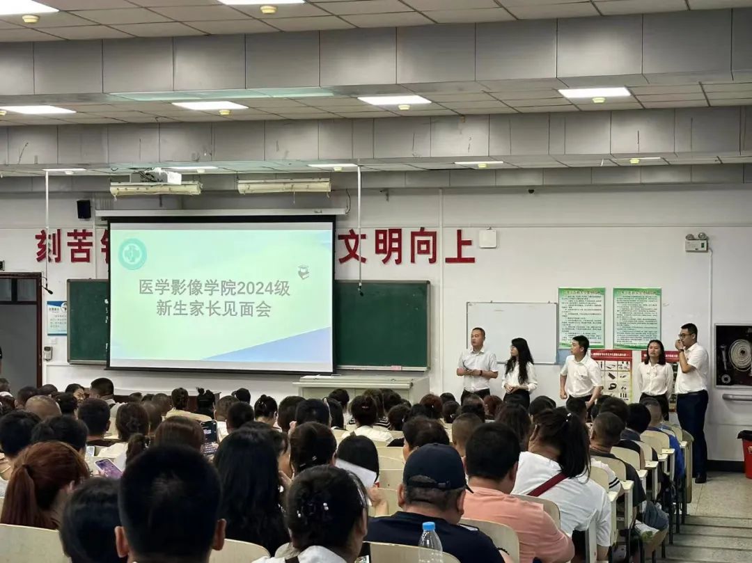 为了更好地迎接新生入学,搭建学院与家长之间的沟通桥梁,为新生的学习发展共同保驾护航,医学影像学院于2024年8月24日在药学楼阶梯五和三号中教室召开新生家长见面会,医学影像学院副处级辅导员宋海南、团委书记陈盈盈分别主持会议。
