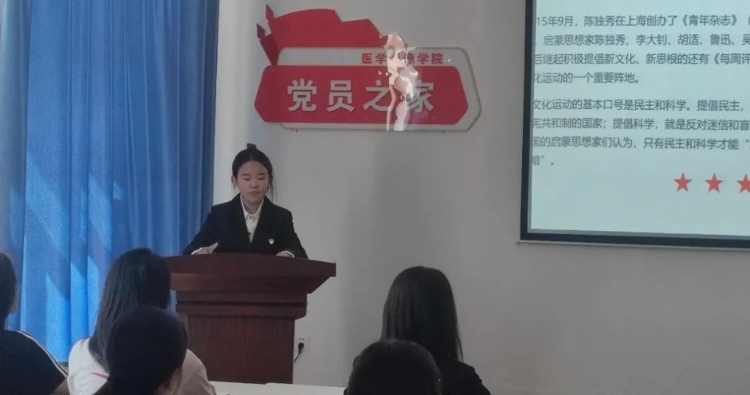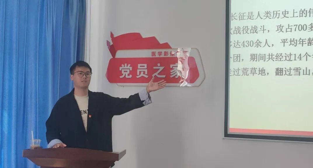 为深入贯彻落实习近平总书记关于党史学习教育的重要讲话精神,持续推进党史学习走深、走实,帮助学生党员全面了解党的光辉历程和伟大成就,进一步坚定学生党员理想信念,提升党性修养,传承红色基因。2024年8月28日中午,医学影像学院在党员之家开展了首期“讲好百年党史 激发奋进力量”学生党员讲党史主题活动,学生党总支书记、副处级辅导员宋海南,正科级专职组织员、学生第五党支部书记付万兴,学院所有在校学生党员出席此次活动。