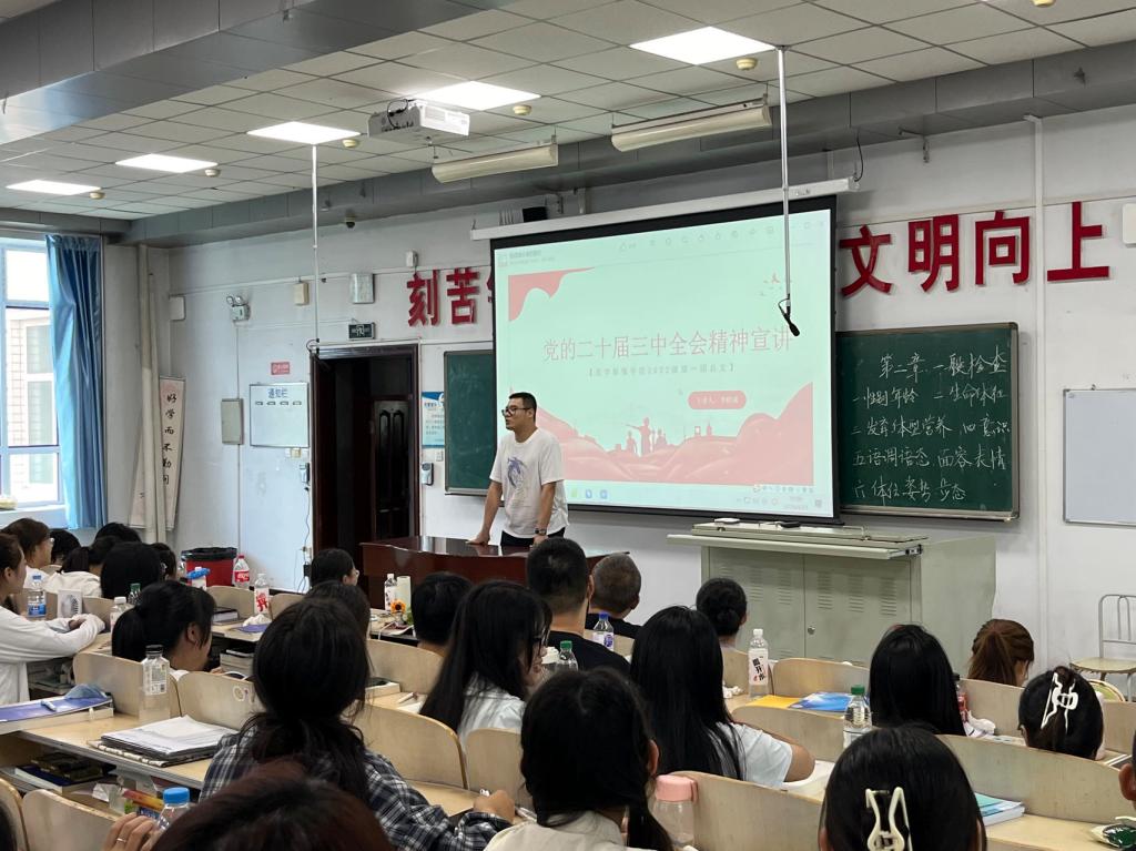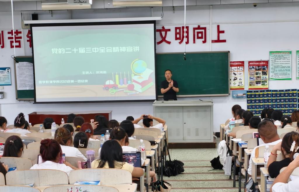 党的二十届三中全会,是在以中国式现代化全面推进强国建设、民族复兴伟业的关键时期召开的一次十分重要的会议。为全面准确把握党的二十届三中全会的重大意义和精神实质,医学影像学院辅导员于近日深入教室开展党的二十届三中全会精神宣讲,教育引导全院学生要切实把思想和行动统一到全会精神上来,守正创新、务实担当,为建设健康中国、实现中华民族伟大复兴的中国梦贡献力量。