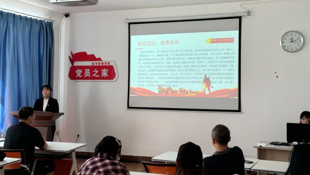 随后,学生党员李杨深入讲解了渡江战役的辉煌历程。李杨详细阐述了渡江战役的发生背景、坚定信念的革命精神、军民团结的生动场景以及攻坚克难的英勇斗争。李杨的讲解让在场的师生深刻感受到革命先辈们英勇无畏的革命精神和为人民服务的崇高情怀,激励大家不忘初心,牢记使命,为实现中华民族伟大复兴的中国梦而努力奋斗。