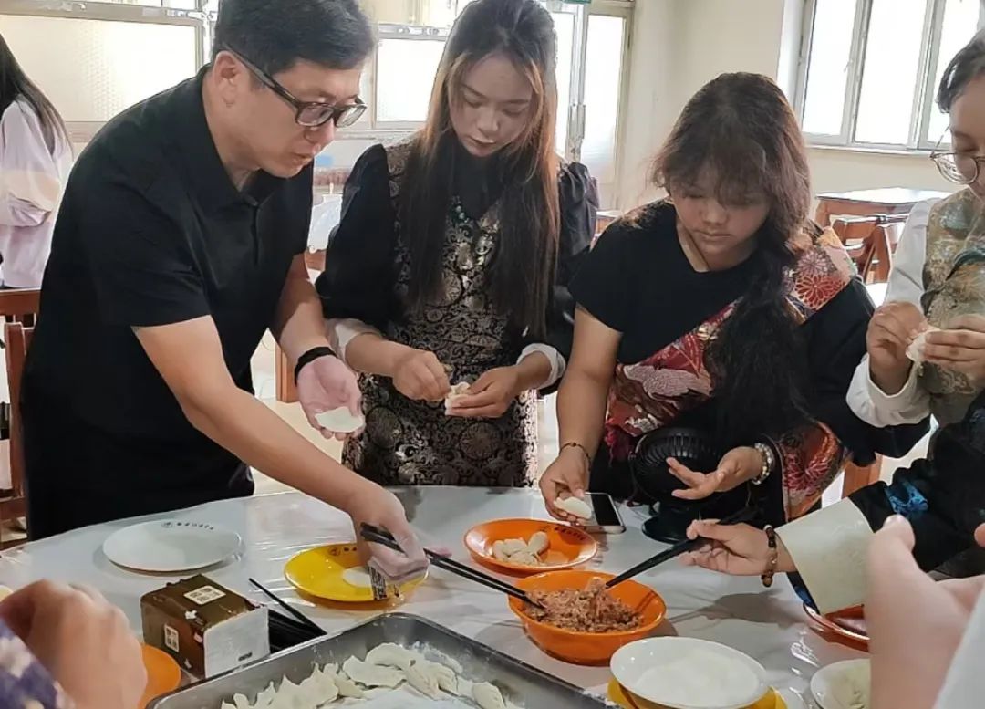 “同心共筑中国梦,携手并进创辉煌。”随着面团在学生们手中翻飞,饺子皮渐渐成型,那份来自不同民族却同样炽热的情感也在悄然凝聚。大家围坐一圈,你教我学,我包你赞,不仅交流了包饺子的技巧,更在欢声笑语中增进了彼此的了解和友谊。这一刻,石榴花的绚烂不仅绽放在枝头,更深深植根于每位学子的心田。
