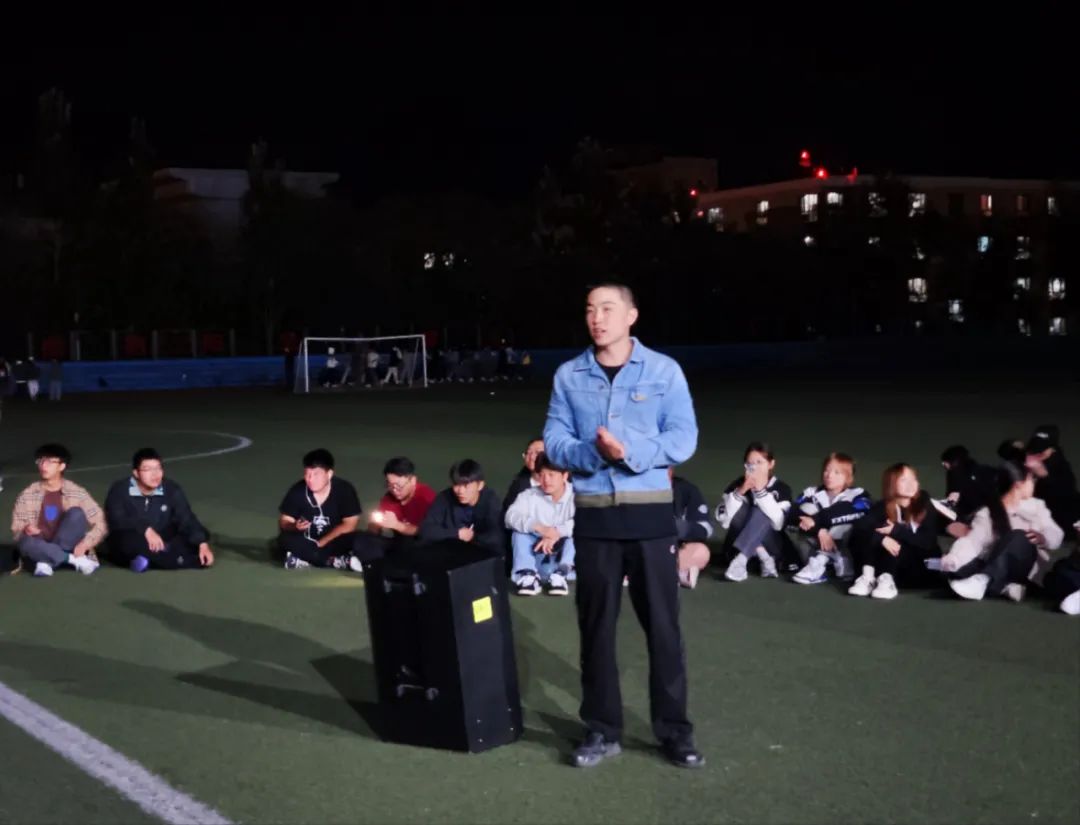 随后,在辅导员老师的组织下同学们一起玩了击鼓传花的游戏。李英翰老师强调:“海上生明月,天涯共此时”,同学们虽然来自五湖四海,但为了一个共同的目标相聚于此,大家要努力学习高超技术,夯实基础,不断提升,将来服务人民不负学校期望。活动最后,三位老师带领全体同学合唱歌曲《歌唱祖国》,表达对祖国母亲的深沉爱意,在悠扬的旋律中文艺活动落下了帷幕。