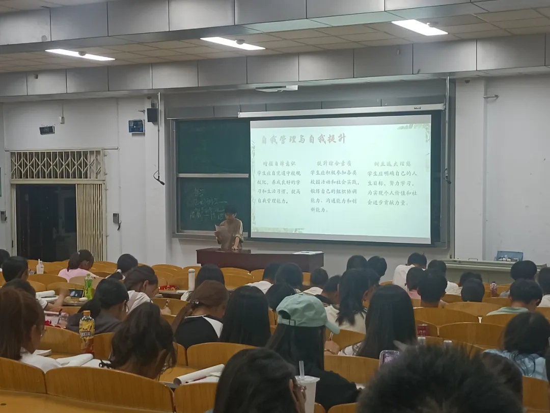 本次活动面向我院全体学生,着重强调大学生成长手册上的内容,让我院学生充分认识到肃校规校纪,树优良学风的重要性,使学校管理工作科学化、规范化、制度化。同时要求同学们全身心投入到学习生活当中,通过对增强自律意识、提升综合素质、树立远大理想这三方面的宣讲促进学生塑造自我管理和自我提升的理念。