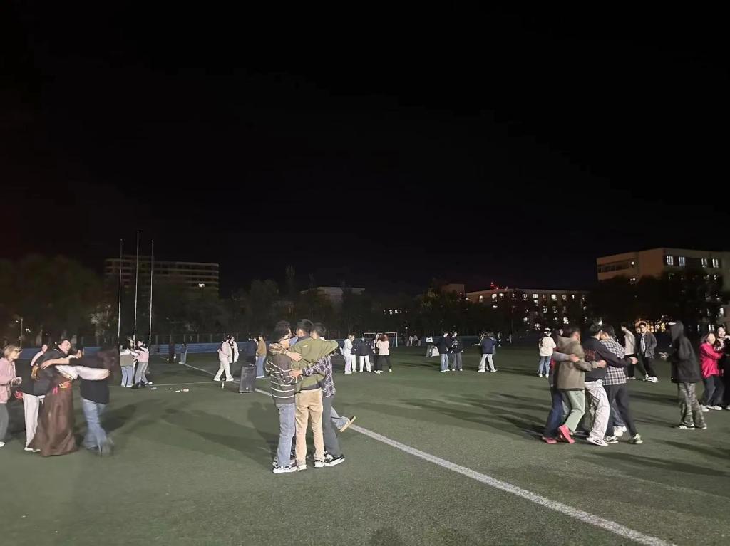 随后,在赵天赐同学和罗伟瑄同学的组织下,同学们进行了特色趣味游戏,如“月饼蹲”“切月饼”以及以“月”为中心的诗词飞花令游戏。最后,到场同学围成一圈,跟随音乐与藏族同学一起跳藏舞并合唱《星辰大海》,表达各族人民大团结的喜悦之情,展现了中华民族大家庭的团结和共融。