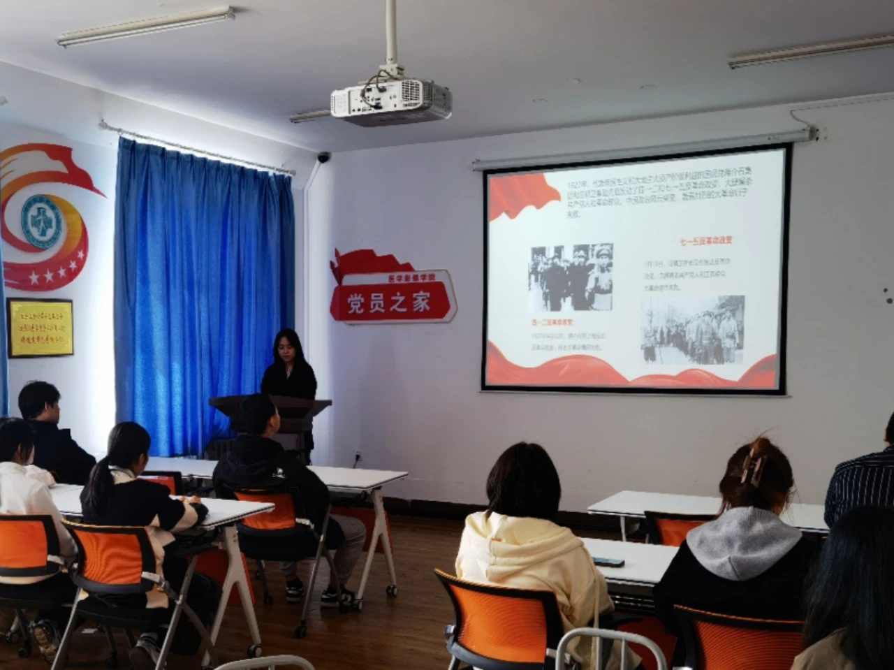 讲好党史故事是传承红色基因的重要途径。通过生动鲜活的党史故事,可以更好地帮助师生学习党史、新中国史,把红色基因融入血脉,牢记初心和使命,坚定理想信念,保持革命意志,发扬斗争精神。2024年9月25日中午,医学影像学院在党员之家开展第五期“讲好百年党史 激发奋进力量”学生党员讲党史主题活动,学生第二党支部组织委员杨笑乙主持活动,全体在校学生党员出席此次活动。
