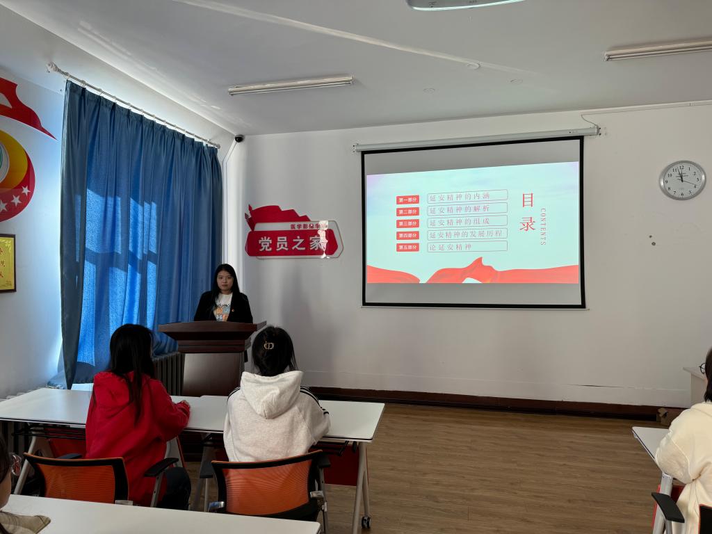 最后,杨芷萌以“弘扬延安精神”为主题向大家讲述了延安精神。她详细讲述了延安精神的内涵、解析、组成、发展历程和论延安精神五个部分。杨芷萌指出延安作风体现在实事求是的态度上。面对复杂的国内外形势,延安时期的共产党人始终坚持真理,修正错误,不搞空谈,不做表面文章,他们用实际行动证明了只有脚踏实地,才能赢得人民的信任和支持。这种精神对于我们今天的改革发展同样具有重要的启示意义。她表示延安作风不仅属于过去,更属于现在和未来,要共同传承和弘扬这一伟大的红色基因。