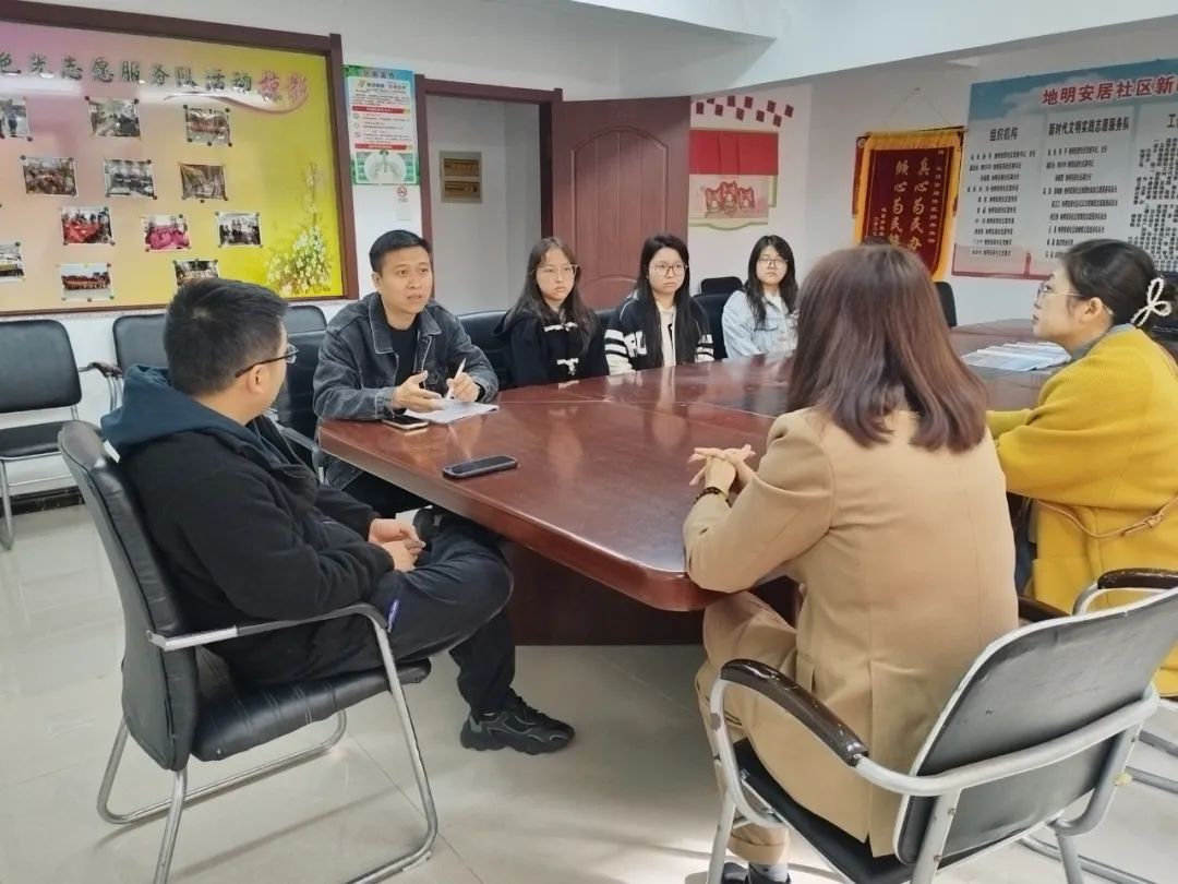 为推动项目计划顺利实施,2024年10月14日上午,“医心向党践使命 红色领航佑健康”项目团队师生一行在爱民区委组织部孙艺心同志的对接下,前往兴平街道地明安居社区进行项目对接,并围绕活动目标、活动形式和成果展示等内容进行了深入讨论与交流,为后续项目的顺利开展奠定了坚实的基础。