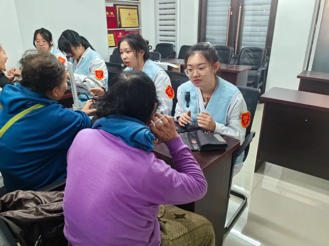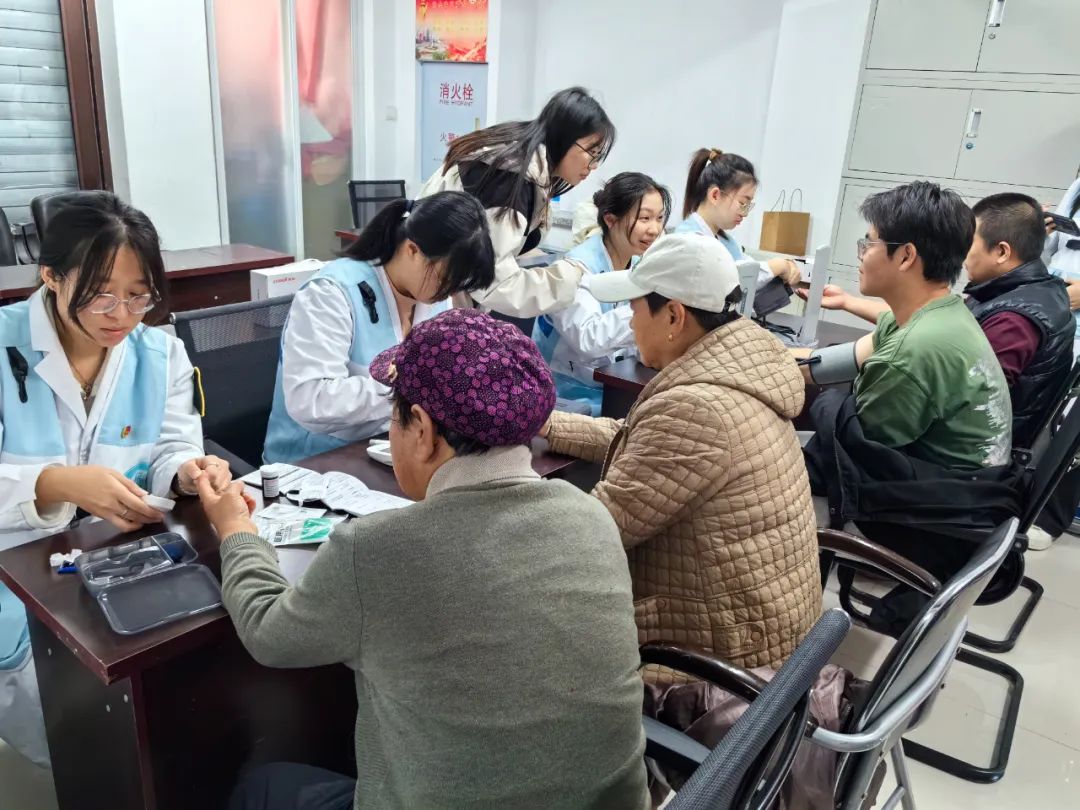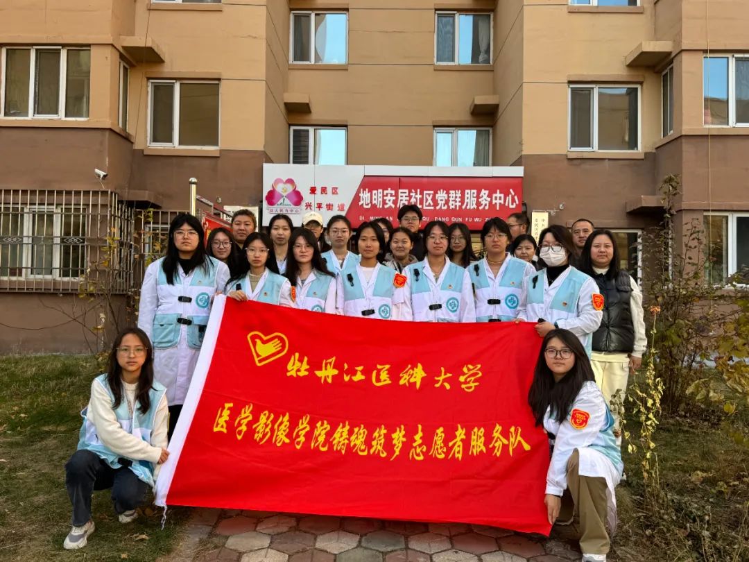 2024年10月20日下午,医学影像学院“铸魂筑梦”志愿服务队联合地明安居社区开展“医心向党践使命 红色领航佑健康”党建联盟项目活动,青年志愿者们前往爱民区金龙家园小区开展爱心义诊与医务宣传志愿服务活动。