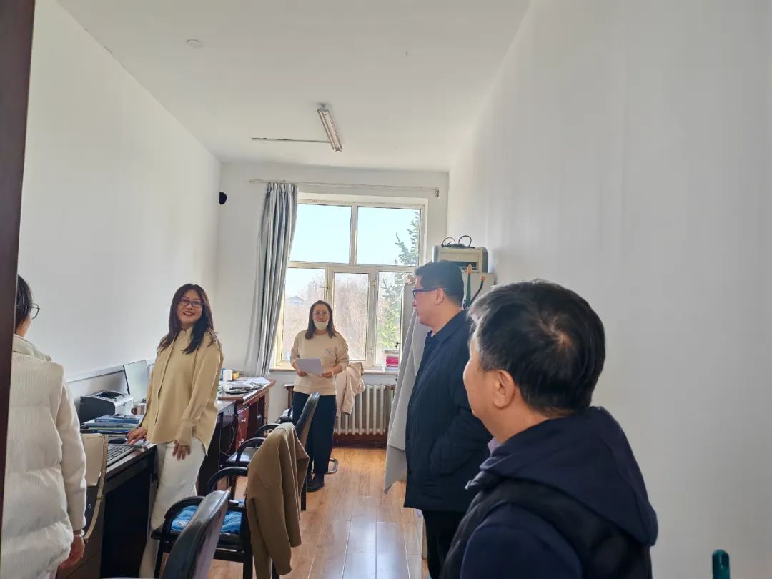 在走访学生工作办公区时,潘艳明了解到新入职辅导员教师未配备打印机,立即开展现场办公,组织协调向学校提出申请帮助解决,以保障辅导员教师顺利开展工作。潘书记询问了几位新入职教师的工作适应情况,鼓励他们创新工作方式方法,不断提升业务能力,为学院发展注入新的活力;对学生工作队伍提出更高要求,希望他们能关注学生成长,做好学生的引路人,助力学院学生思想政治和管理工作迈上新台阶。