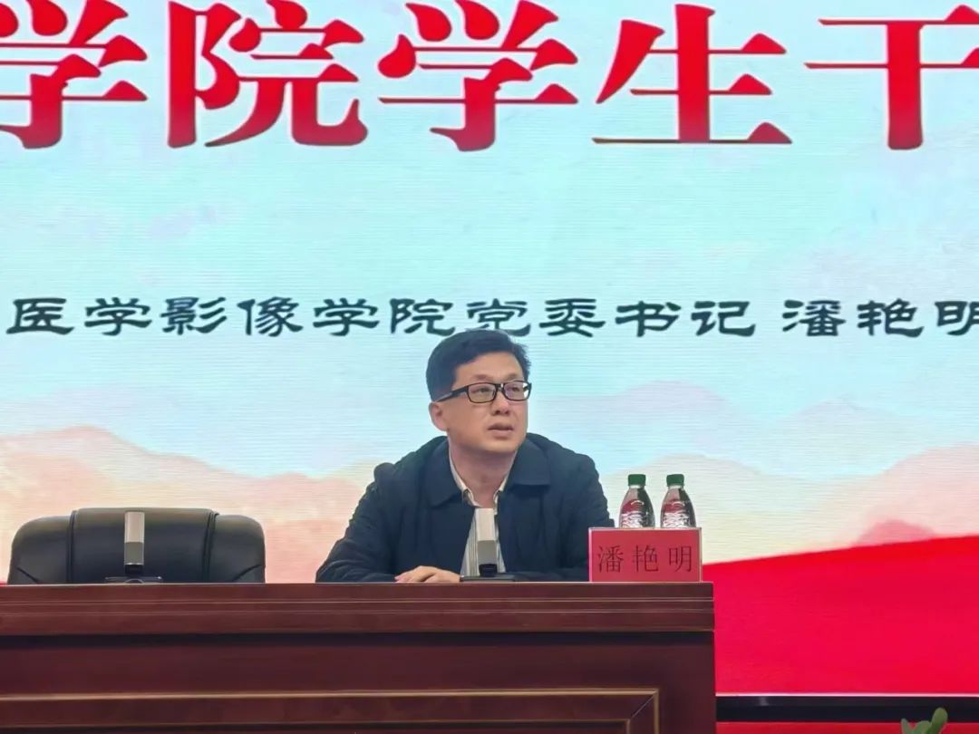 为进一步加强我院学生干部队伍建设,增强学生干部队伍凝聚力,提升学生干部综合素质能力,充分发挥学生干部思想引领和先锋模范带头作用,2024年10月24日,医学影像学院在文体馆举行“铸魂启航,明责强基”学生干部培训开班式,医学影像学院党委书记潘艳明,副处级辅导员宋海南,优秀校友王阔及全体辅导员出席本次培训开班式。