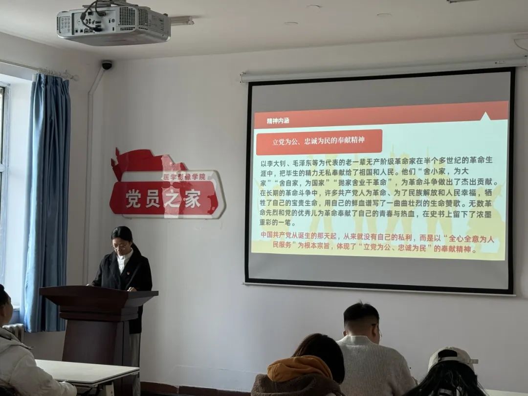 为深入贯彻落实习近平总书记关于党史学习教育的重要讲话精神,让学生党员深刻了解党的奋斗历程与伟大成就,传承红色基因,汲取智慧和力量,增强凝聚力和向心力,增强民族自豪感、责任感和使命感,激发学生党员在新时代征程中为国家发展、民族复兴拼搏奉献的激情。2024年11月06日中午,医学影像学院在党员之家开展第十期“讲好百年党史,激发奋进力量”学生党员讲党史主题活动,学生第二党支部书记仲昭奇主持活动,学院所有在校学生党员出席此次活动。