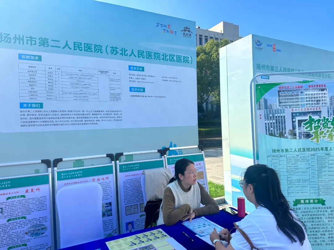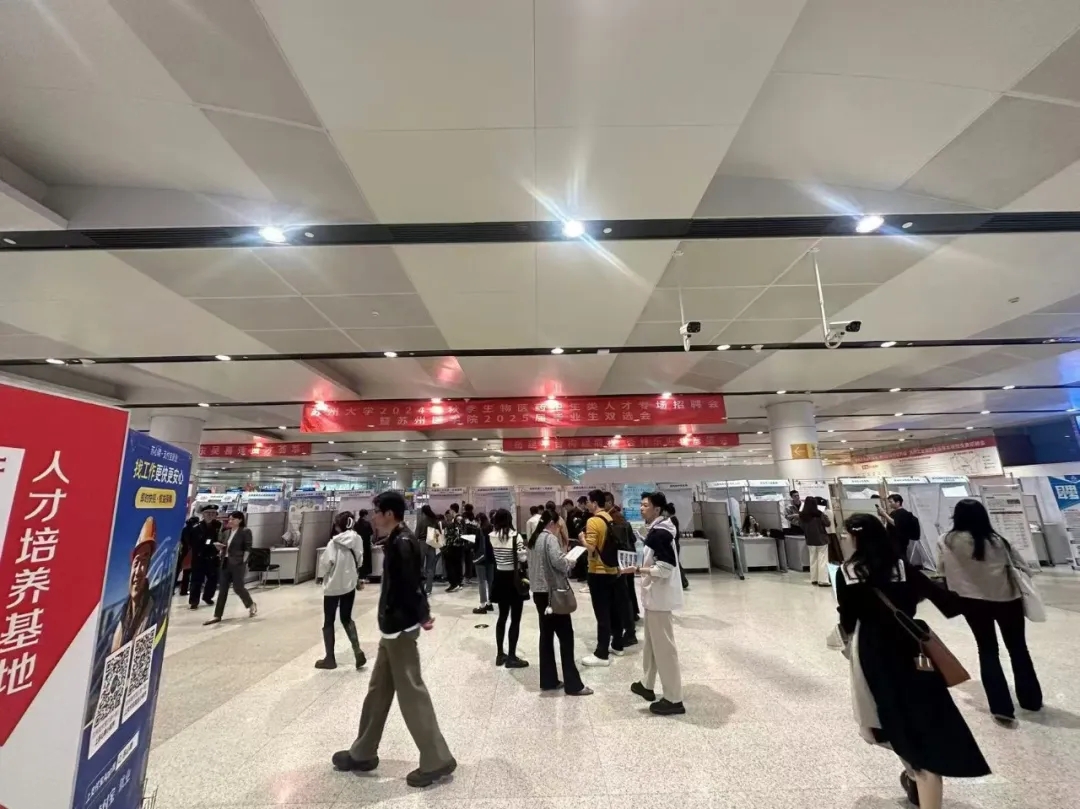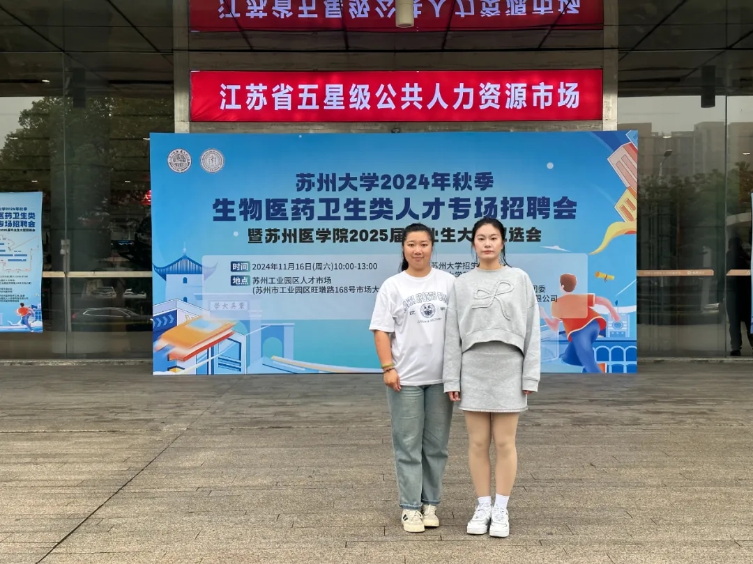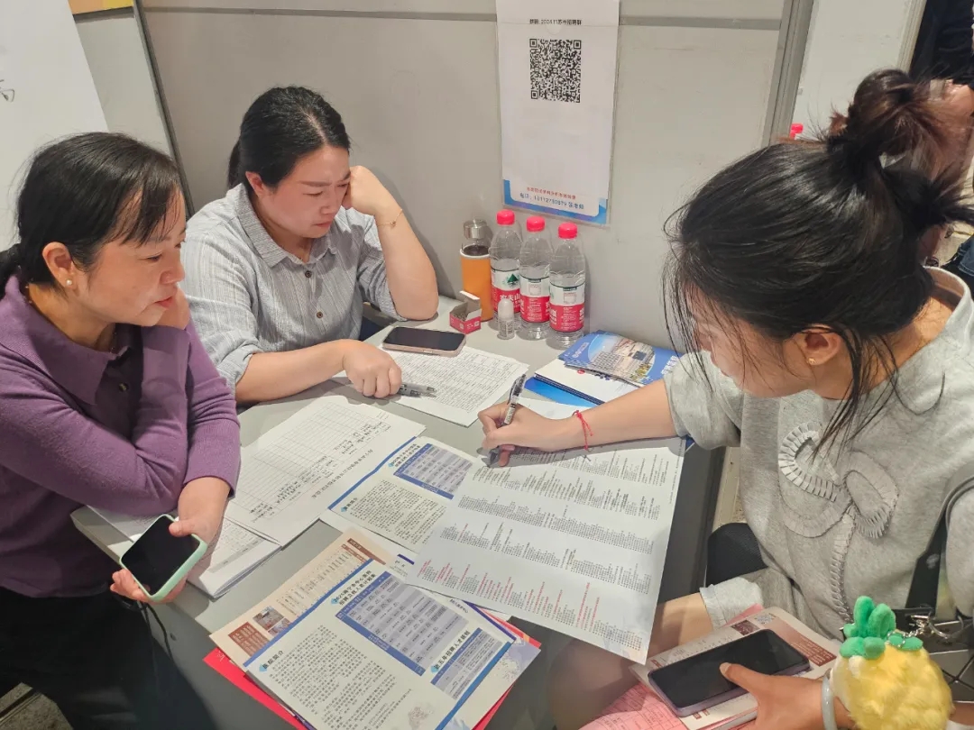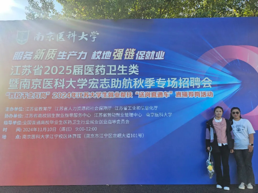 2024年11月10日、16日,“服务新质生产力 校地强链促就业”江苏省2025届医药卫生类暨南京医科大学宏志助航秋季专场招聘会、苏州大学2024年秋季生物医药卫生类人才专场招聘会暨苏州医学院2025届毕业生大型双选会正式开幕,招聘会吸引了350多家参会单位带来了上万个岗位,各招聘单位纷纷拿出引才政策,诚意满满。招聘会现场彭博伟、徐倩男对招聘信息进行汇总并逐条分析,将整合好的信息在2025届毕业生钉钉群中进行发布,同时与用人单位积极沟通、建立联系,对同学们提出的问题及时进行解答,给出合理化建议,引导同学们正视现实,积极就业,最后协助有就业意向未能参会的同学递交电子简历。