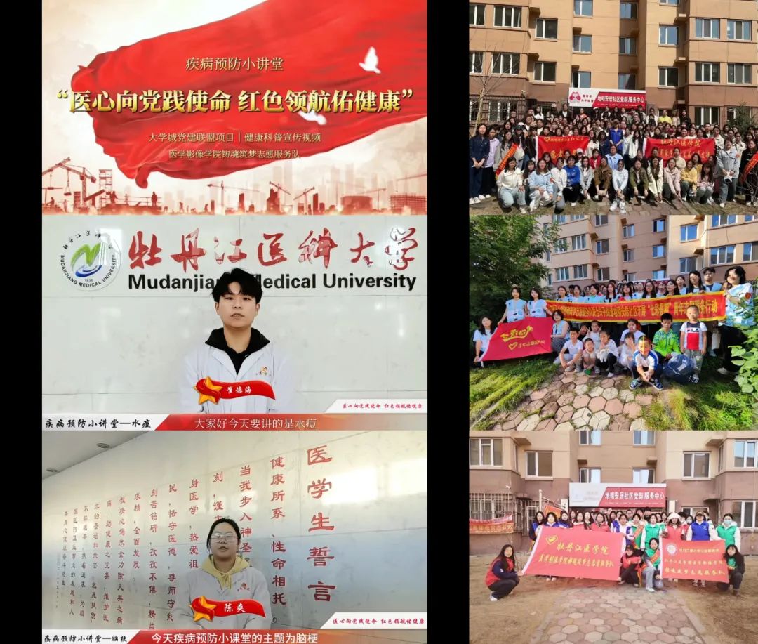 “医心向党践使命 红色领航佑健康”党建联盟项目是以“党建+志愿服务”理念为核心,依托“爱心义诊”、“医务宣传”、“红色宣讲”三翼,结合自身专业优势和特色,在基层治理、服务健康中国等方面切实发挥高校基层党组织与社区联创联动联建作用,目前该项目团队已联合兴平街道地明安居社区开展了近10次志愿服务活动,创新推出“三翼”服务社区居民累计近千人次,制作4期电子医务宣传海报和2期线上健康科普宣传视频·疾病预防小讲堂(水痘篇和脑梗篇)分享社区进行医学云科普浏览量5000+。