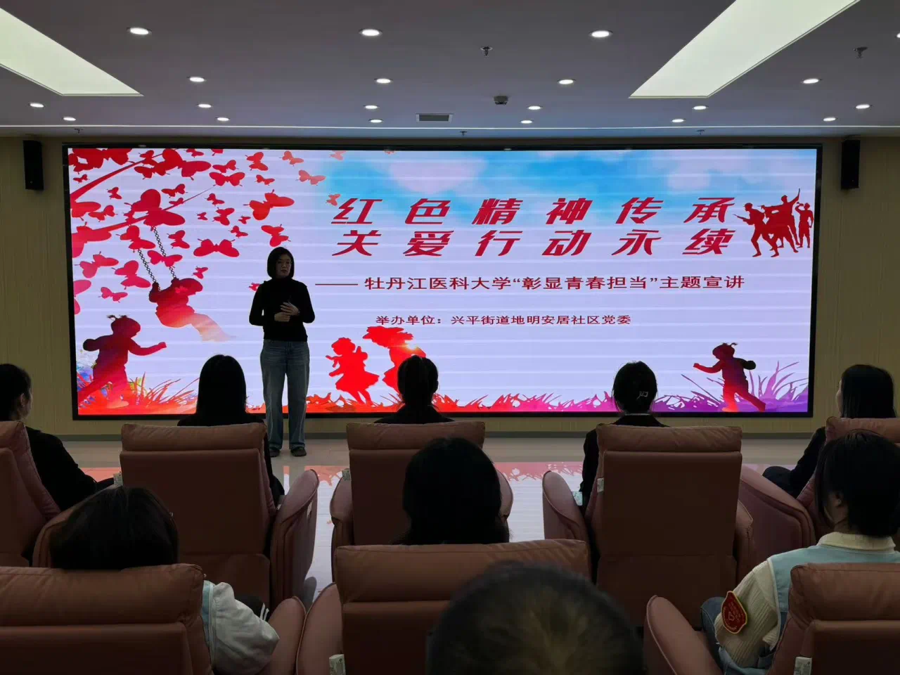 为持续推动基层治理提质增效,打造“社区+大学”党建联合体,构建“资源共享、优势互补、互相促进、共同提高”的党建工作新格局,12月5日,医学影像学院铸魂筑梦志愿服务队联合兴平街道地明安居社区在牡丹江市党群服务中心开展“红色精神传承 关爱行动永续——彰显青春担当”主题宣讲活动。