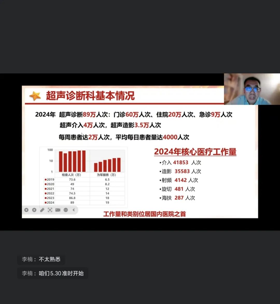 为提高我院就业及实习质量,2025年03月19日,我院邀请中国人民解放军总医院第一医学中心超声科李楠老师,通过线上钉钉平台为学生开展实习规培专题讲座。本次活动作为学校与实习基地长期合作的重要内容,旨在帮助学生系统了解超声医学领域的临床实践路径与职业发展规划。