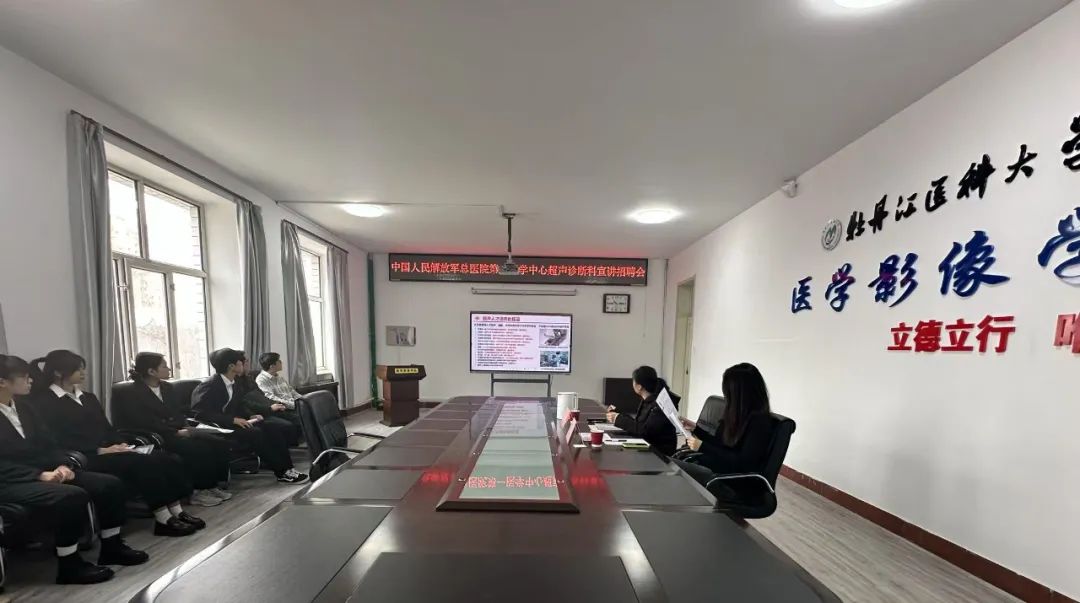 为进一步加强实习就业一体化建设,助力毕业生实现高质量就业。2025年03月25日,医学影像学院邀请中国人民解放军总医院第一医学中心超声诊断科到校召开实习就业专场宣讲招聘会,医学影像学院副处级辅导员宋海南、实习就业科负责人赵春阳、辅导员李英翰以及相关专业学生参加了本次会议。