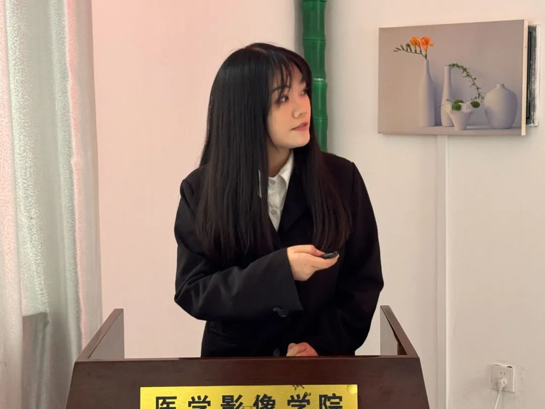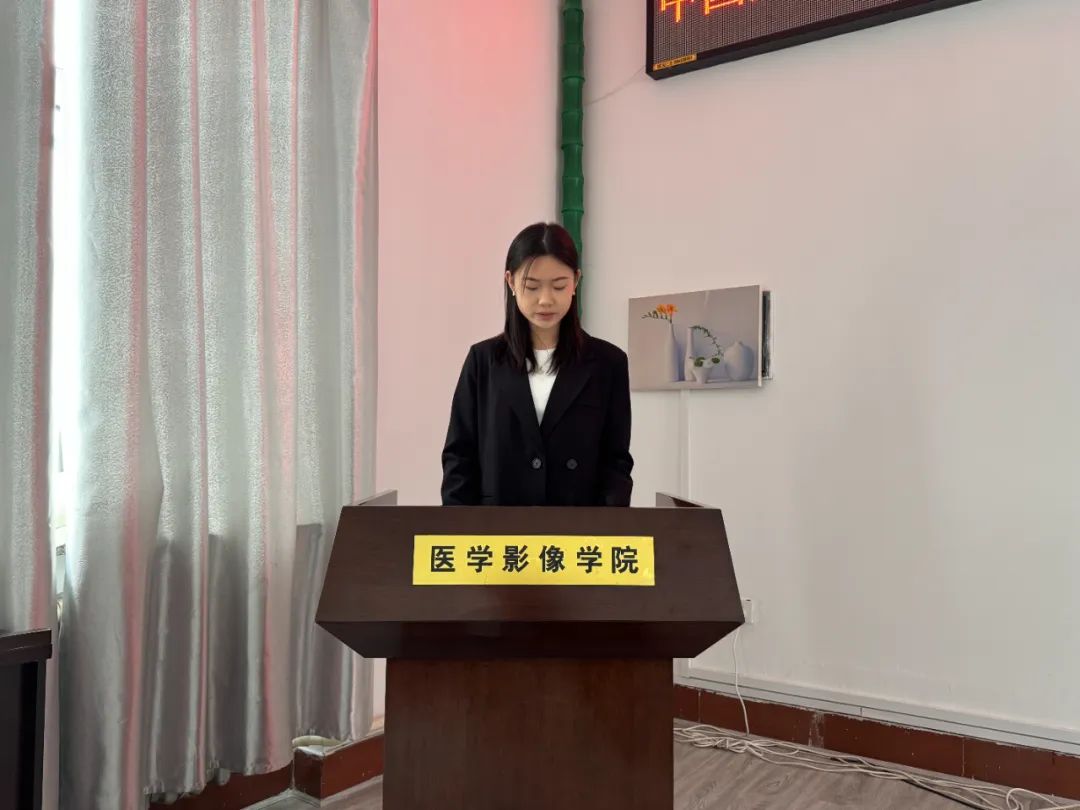 医学影像学院学生第二党支部的两位预备党员曲盈盈和江雨双分别以“遵义会议”和“八女投江”为主题,发表了演讲。两位学生党员不仅深入剖析遵义会议对中国革命走向的重大影响,回顾了八女投江这一悲壮且英勇的抗战历史,还结合新时代的发展需求,呼吁现场的青年党员铭记先辈们的奋斗历程,勇担时代赋予的使命,以实际行动为实现中华民族伟大复兴贡献力量 。