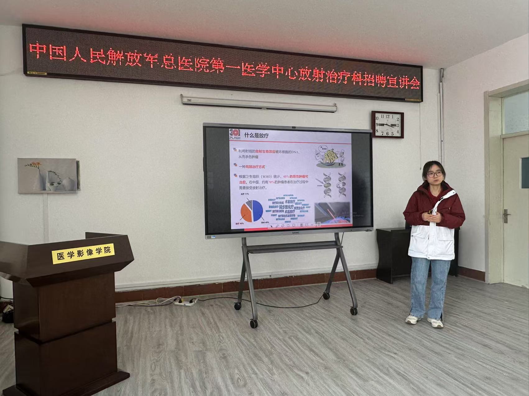 为进一步拓宽毕业生就业渠道,搭建用人单位与毕业生之间的沟通桥梁,2025年3月26日,医学影像学院邀请中国人民解放军总医院第一医学中心放射治疗科崔泽平、吴韶鹃来我院进行实习就业宣讲,学院实习就业科负责人赵春阳、辅导员李英翰以及部分毕业生、实习生参与了此次活动。