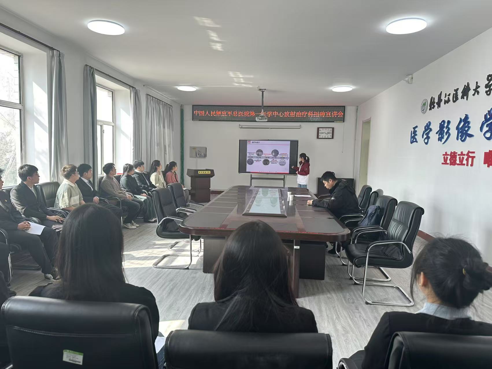 活动伊始,赵春阳代表学院对解放军总医院第一医学中心老师的到来表示热烈欢迎,向总医院长期以来对我院实习就业工作给予的支持表示感谢。随后,放射治疗科物理师吴韶鹃向在场毕业生详细介绍了中国人民解放军总医院的综合实力、医院文化,重点阐述了放射治疗科的科室架构、工作流程、研究方向等情况。她指出,随着医疗技术的不断进步,放射治疗在肿瘤治疗领域的重要性日益凸显,科室对专业人才的需求持续增长,为毕业生提供了广阔的职业发展空间。