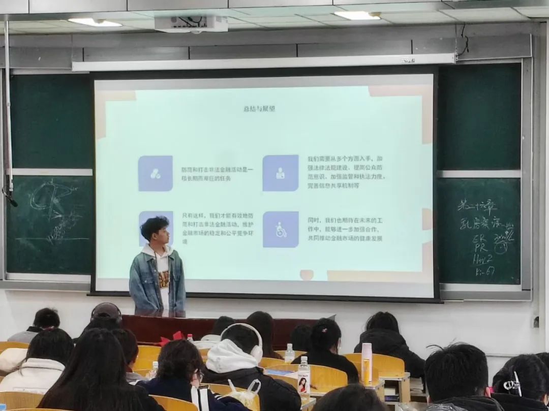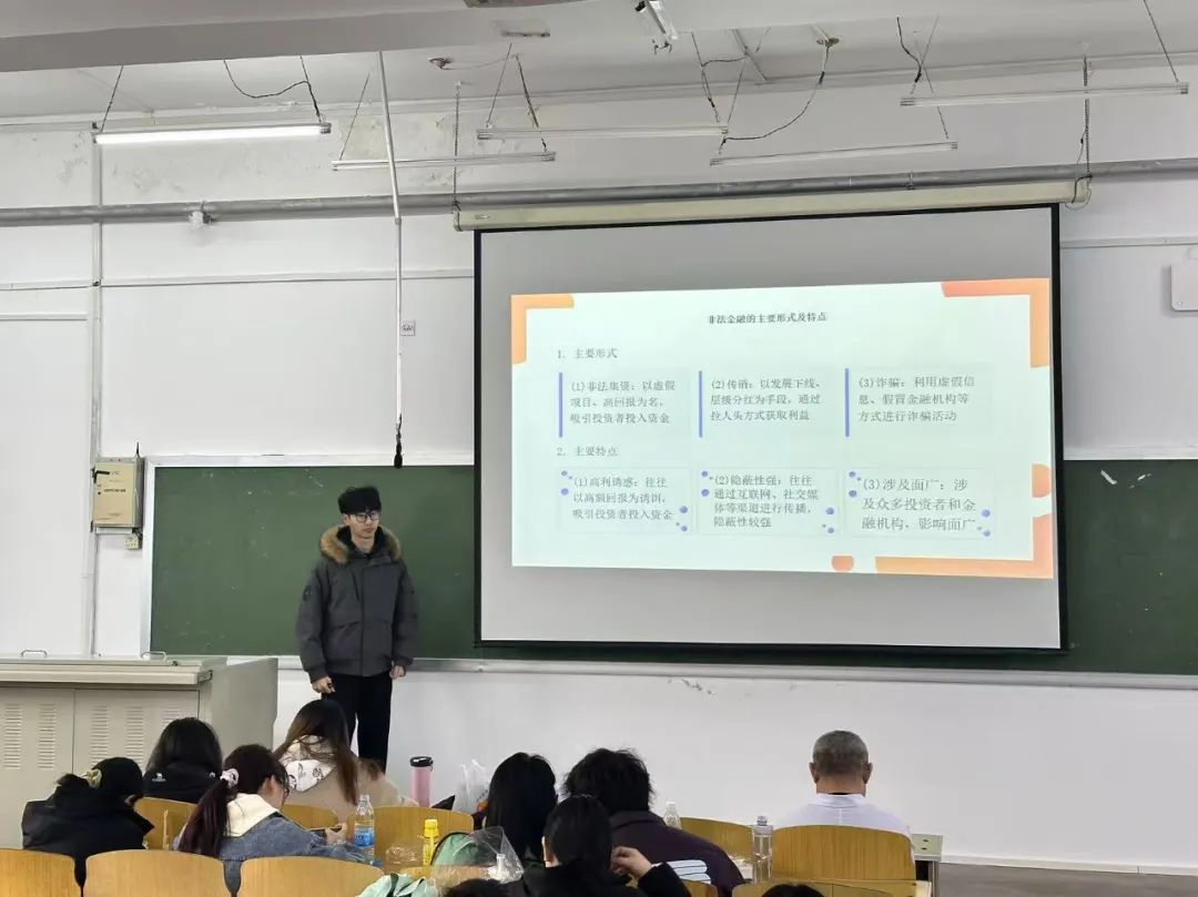 宣讲员以生动有趣的讲解方式,围绕非法金融活动的常见类型、手段特点以及如何防范等方面进行详细阐述。他们结合收集到的真实案例,深入浅出地剖析了“校园贷”、“网络诈骗”等非法金融活动的手段和特点,使同学们对这类犯罪有了更加直观和深刻的认识。同时,宣讲员还传授了一些实用的防范技巧,如何识别诈骗信息、如何保护个人信息等,引导同学们在日常生活中保持警惕,避免上当受骗。在宣讲过程中,同学们积极参与互动,纷纷提出自己的疑问和看法,进行了深入的交流和讨论。
