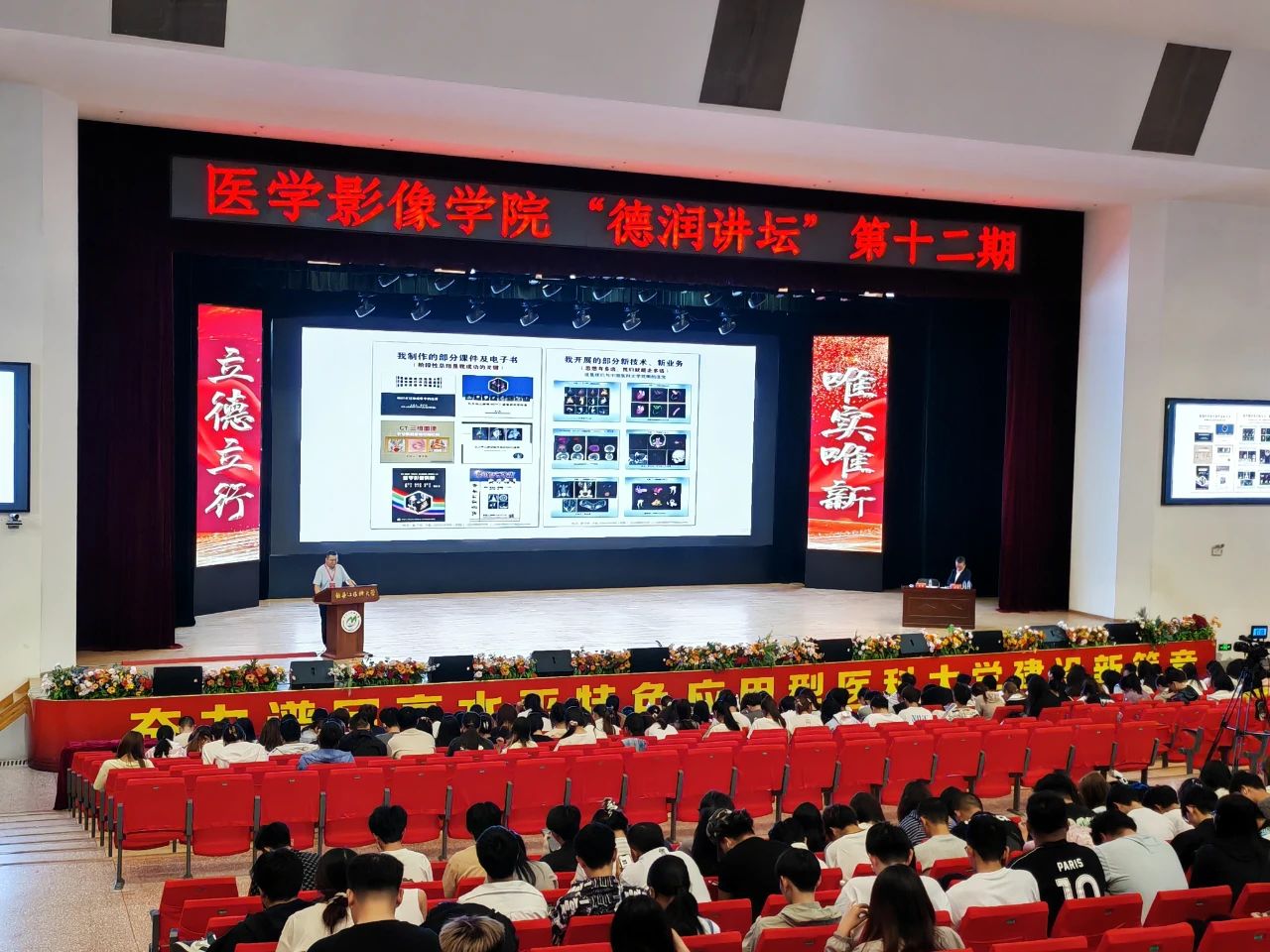 为助力学生了解医学前沿动态,深度拓展学术视野,明确职业发展路径。2025年6月14日,医学影像学院于学校文体馆隆重举办第十二期“德润讲坛”活动 。此次讲坛特邀我院优秀校友、山东大学齐鲁医院德州医院放射科李子浩教授担任主讲,学院500余名师生齐聚现场,共赴这场学术交流盛宴。