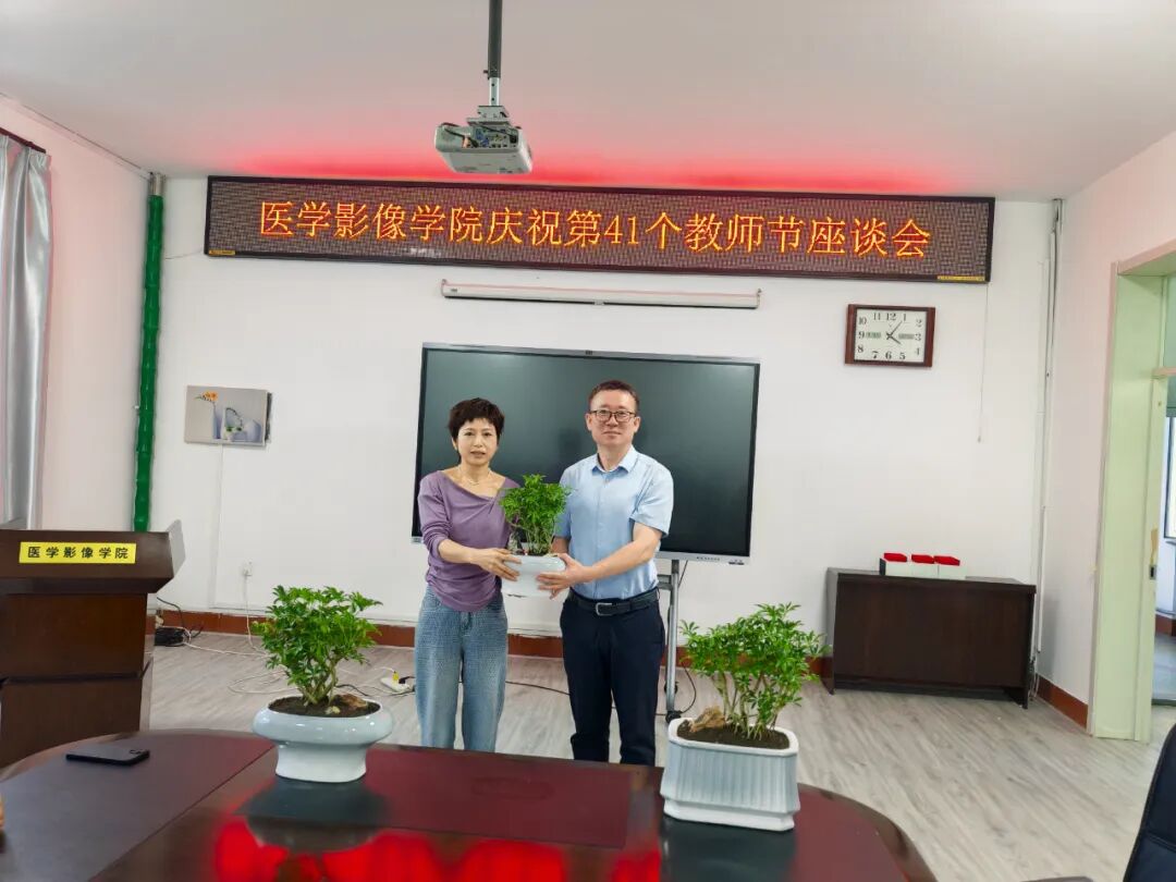叶露花香,秋意漫天。9月9日下午,在第41个教师节来临之际,医学影像学院以“以教育家精神筑魂强师,谱写教育强国建设华章”为主题,举行庆祝第41个教师节座谈会。学院领导班子成员、校部及临床无课教师、新入职教师及职能科室负责人齐聚一堂,共庆佳节,共话学院发展。座谈会由医学影像学院党委副书记宋海南主持。
