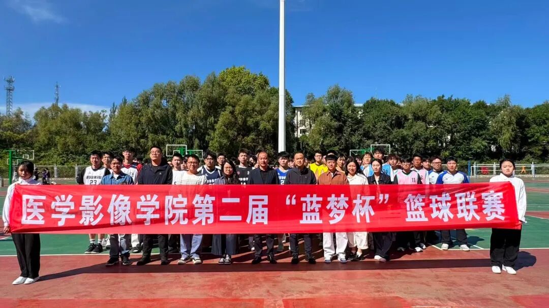 为切实将“体育强国”战略融入校园建设,积极营造健康的校园体育文化氛围,2025年9月17日中午,医学影像学院第二届“蓝梦杯”篮球联赛开幕式在学校篮球场顺利举行。本次赛事覆盖全院4个年级,共组建9支参赛代表队,百余名影像学子将以篮球为媒、以竞技会友,在赛场之上书写热血青春篇章。医学影像学院党委书记徐永良、党委副书记宋海南及全体辅导员与学生共同见证这一充满青春气息的时刻。