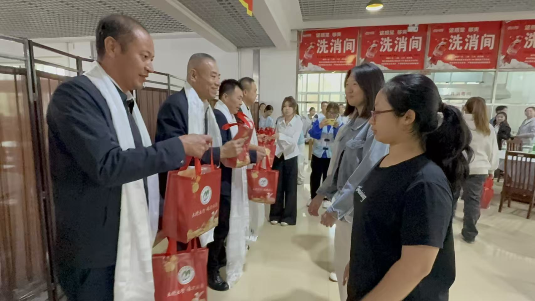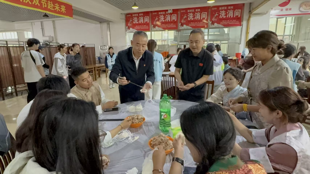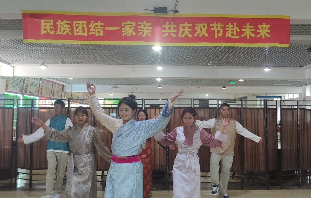 随着面团在学生们手中翻飞,饺子渐渐成型,中秋的团圆意与国庆的爱国情在不同民族学子心中悄然凝聚。大家围坐一圈,不仅交流包饺子的技巧,更在双节氛围里增进了彼此的了解和友谊。藏族同学们自发组织了舞蹈表演,欢快的舞步展现了藏族文化的独特魅力,也表达了他们对民族团结、双节同庆的热爱与向往。表演活动让同学们在感受不同民族风俗文化魅力的同时,更增添了国庆中秋双节的浓厚氛围,进一步增强了“中华民族一家亲,双节共庆一家情”的深厚情感。活动最后王俊林部(处)长进行总结,他指出民族团结是国家之根本,是力量之源泉,在国庆中秋双节之际,我们要以此次活动为契机,深化民族团结教育,让中华民族共同体意识在双节氛围中深入人心。