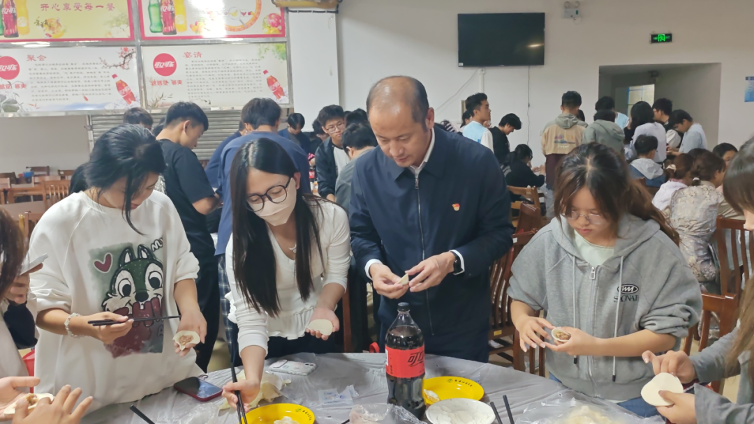 “月圆国盛庆双节,民族情深启新程。”活动现场,藏、回、满等各民族学生与校院领导、辅导员围坐一起,在揉面、擀皮、包饺子的协作中,让中秋的团圆意与国庆的爱国情交融升温。活动中俞春利部长深情寄语,他强调:“在国庆中秋双节即将到来之时,各民族要像石榴籽一样紧紧抱在一起,以团结之力共筑中国梦。这次活动是弘扬民族团结精神的生动实践,要让中华民族共同体意识在青年一代心中厚植深耕,在双节的特殊意义中绽放时代光彩。”同时,俞春利部长和王俊林部(处)长还为在场的各民族学生一一送上精心准备的中秋礼物,这份温暖的馈赠让同学们在双节氛围里更添归属感与幸福感。